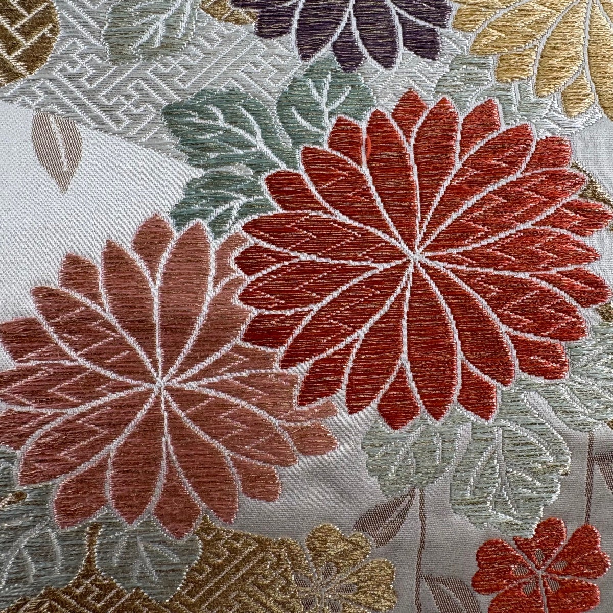 袋帯 秀品 菊 葉柄 唐織 金銀糸 灰茶 六通 正絹