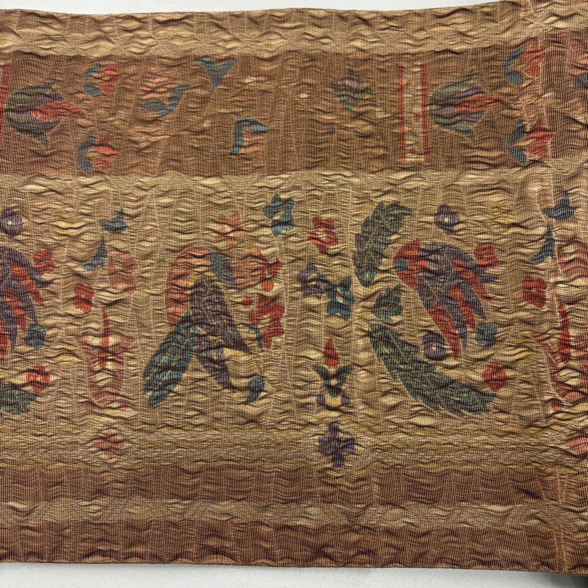 袋帯 逸品 龍村晋 落款あり 天平猟獣文錦 金糸 箔 薄緑 全通 正絹