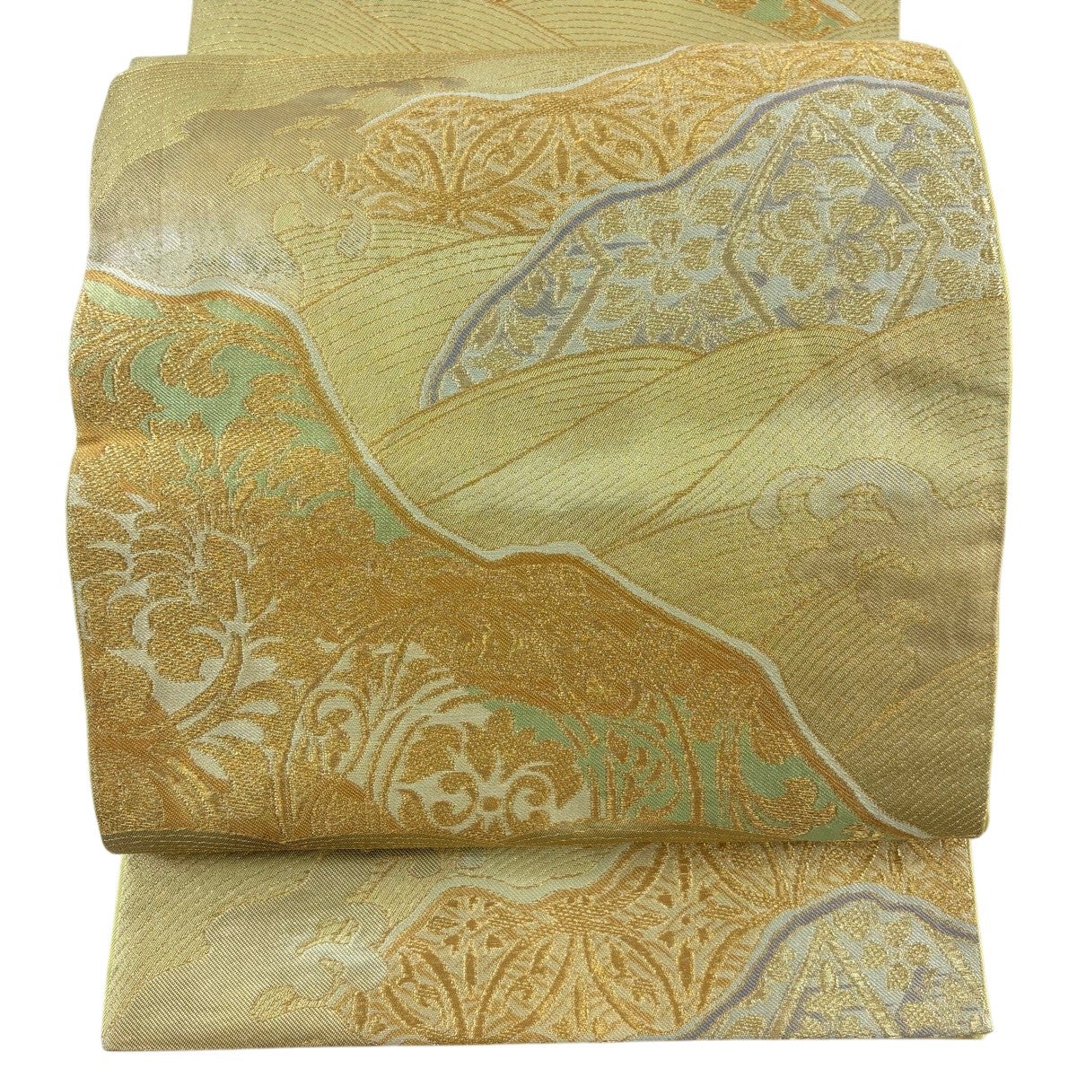 袋帯 秀品 花鳥 滝 唐織 金銀糸 金色 全通 正絹