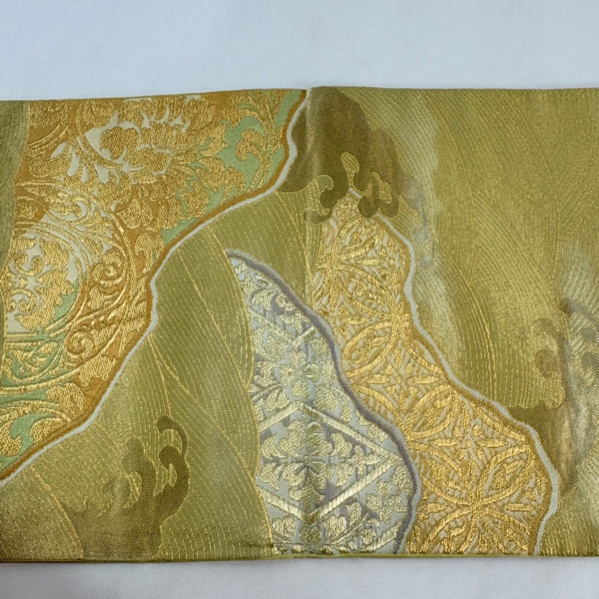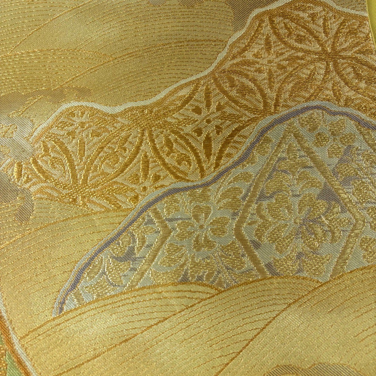 袋帯 名品 川島織物 落款あり 波 草花 金糸 箔 金色 六通 正絹