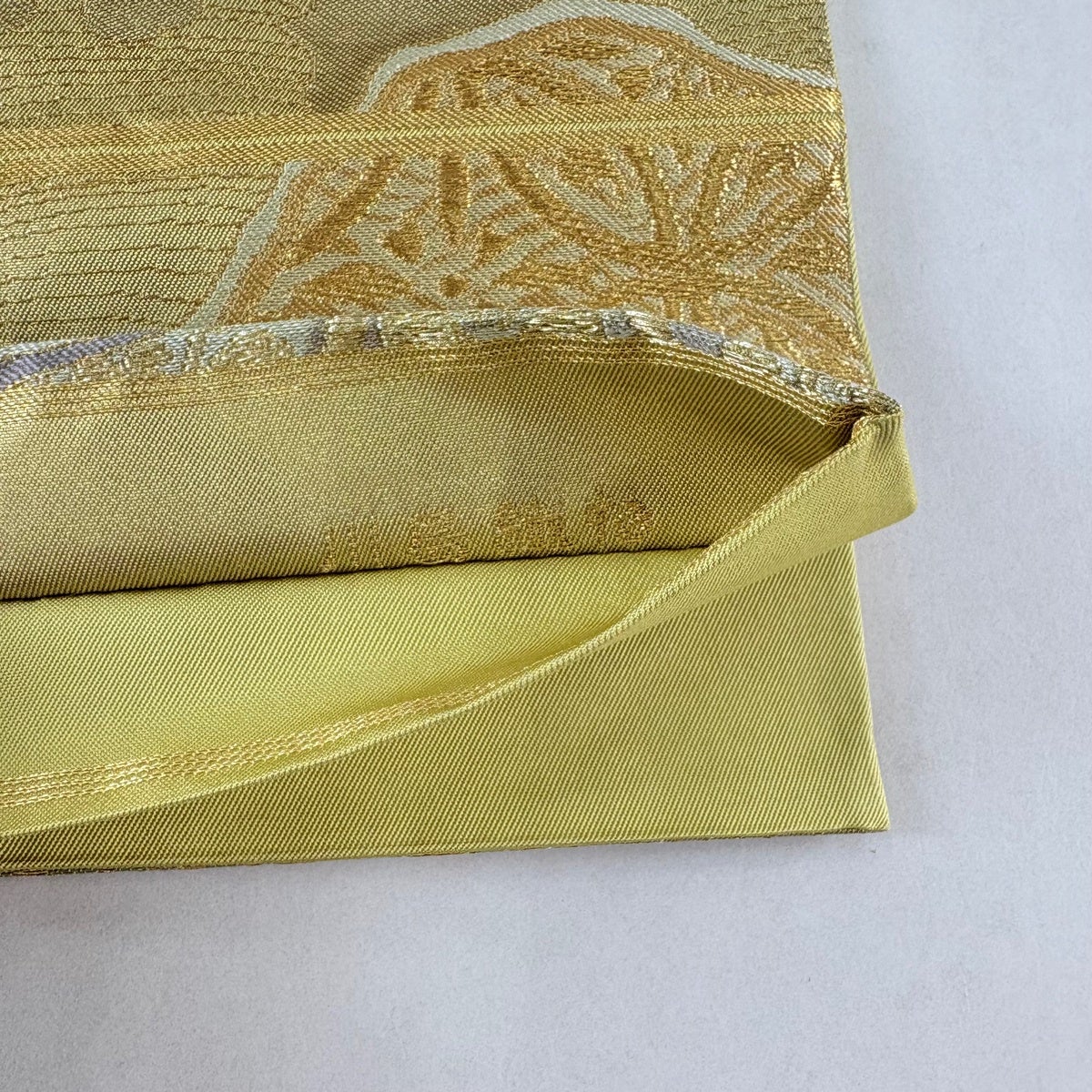 袋帯 秀品 蝶 菊 金銀糸 唐織 金色 六通 正絹