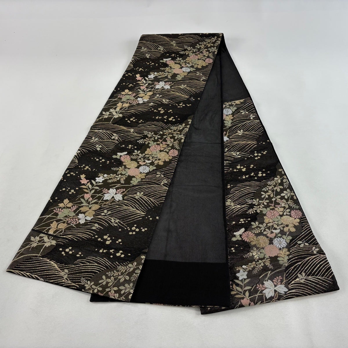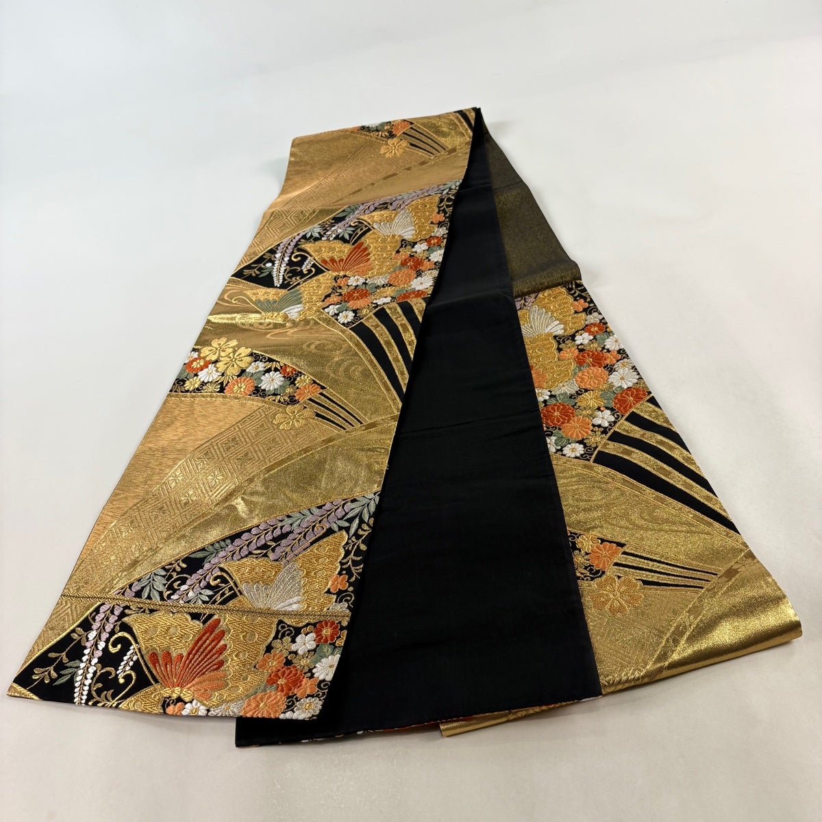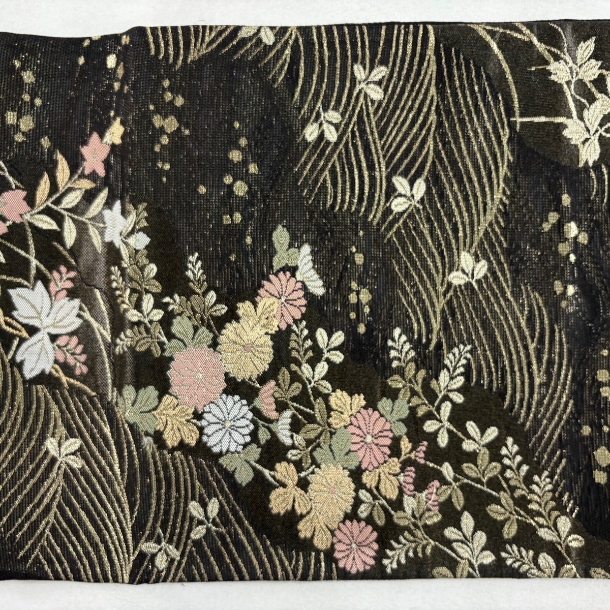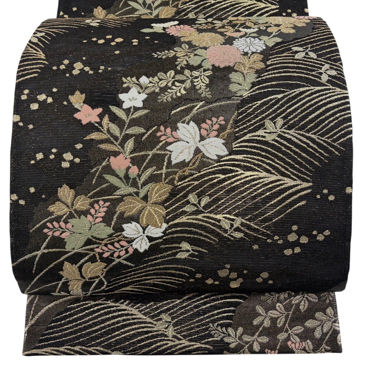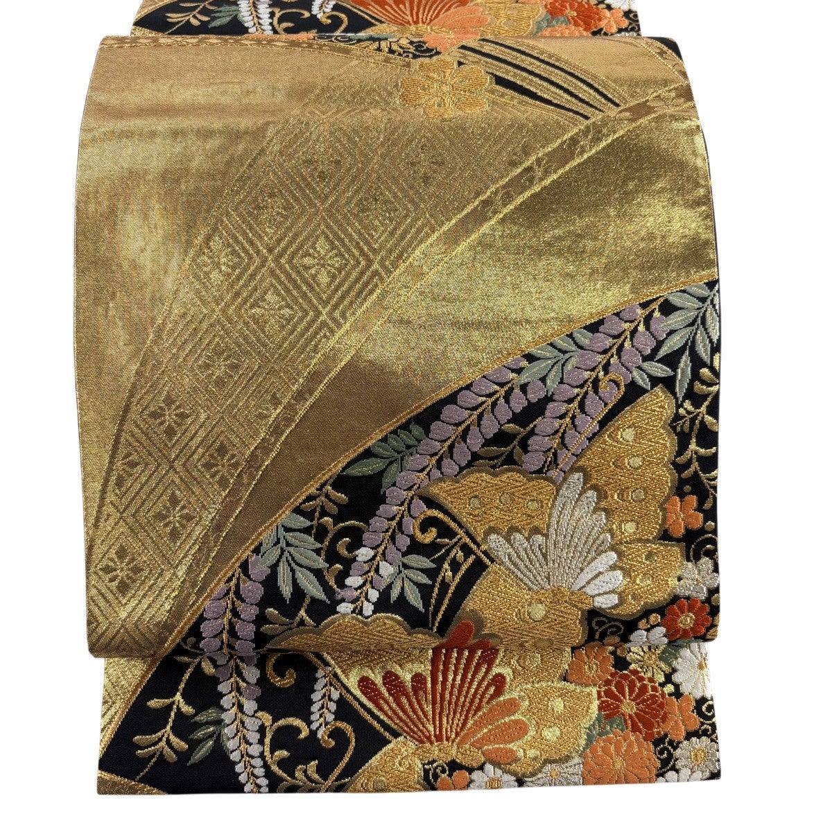袋帯 秀品 桜 金銀糸 箔 黒 六通 正絹