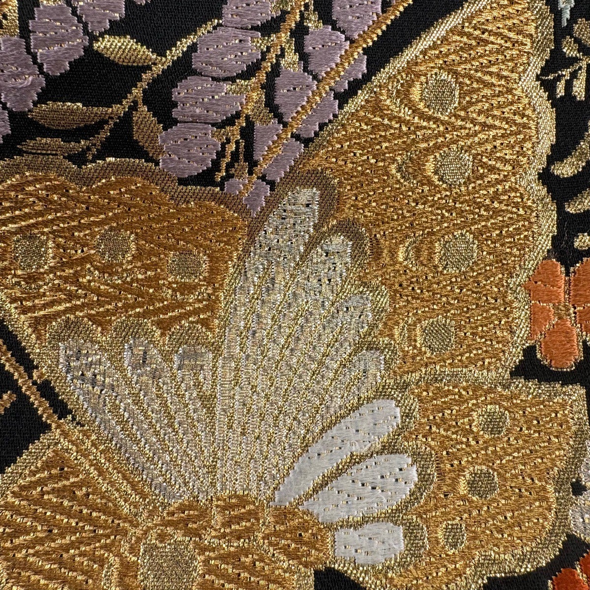 袋帯 秀品 蝶 草花 唐織 金糸 金色 六通 正絹