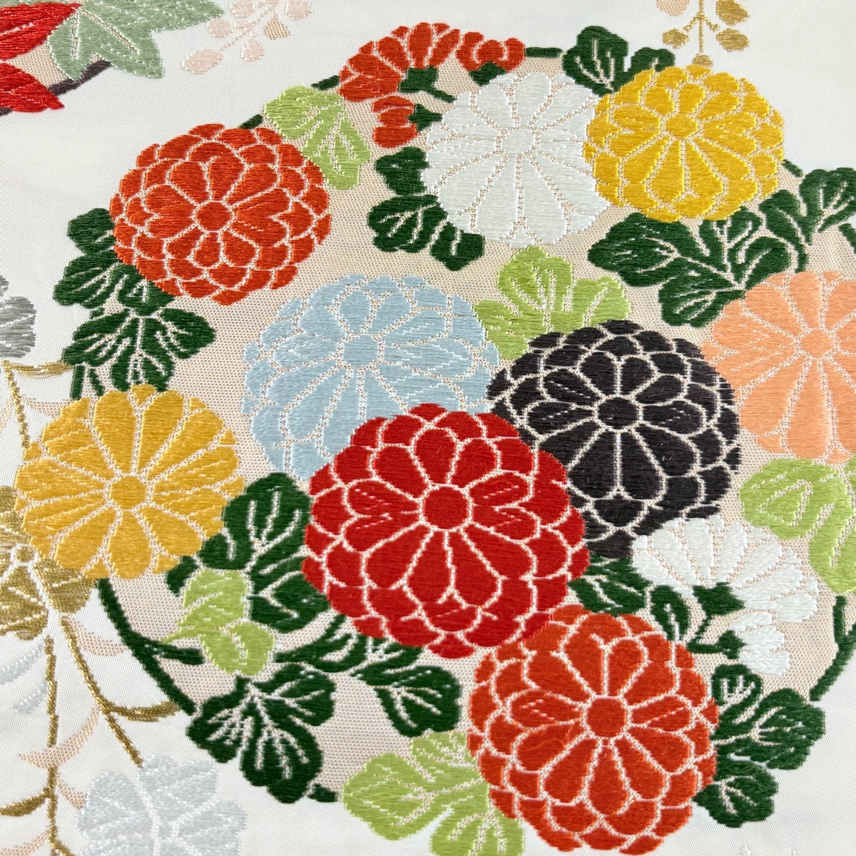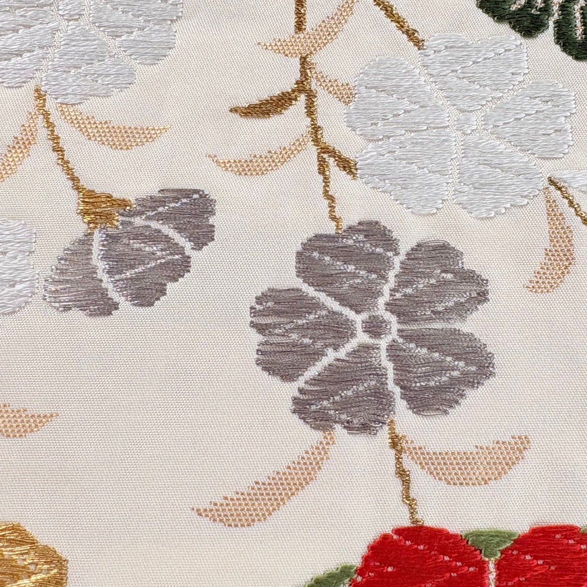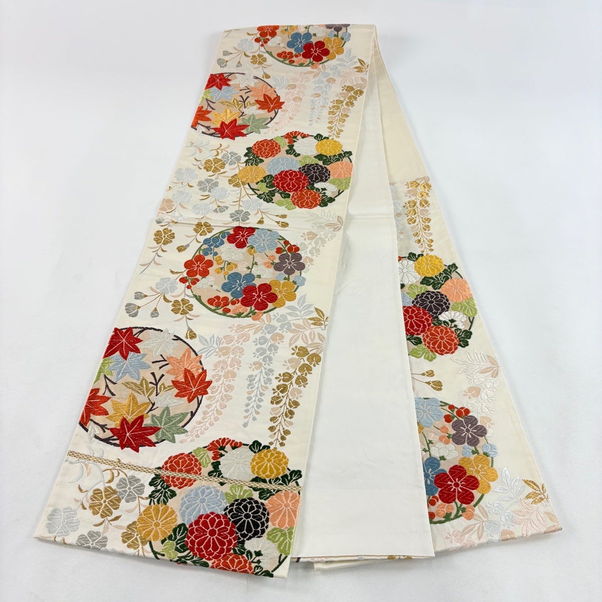 袋帯 秀品 秋花丸文 桜 刺繍 金銀糸 ベージュ 六通 正絹