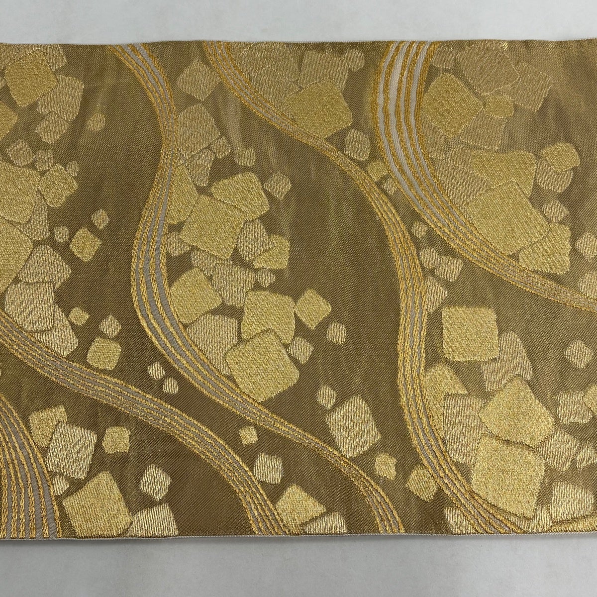 袋帯 優品 桜 花びら 箔 薄黄土色 全通 化繊