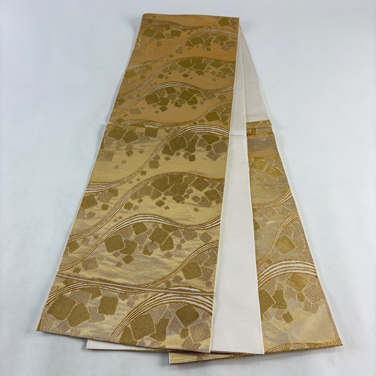 30%OFF 袋帯 秀品 波 刺繍 箔 ベージュ 六通 正絹 K30