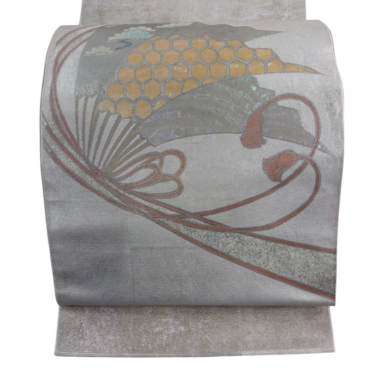 30%OFF 袋帯 秀品 菊 松 箔 金銀糸 灰色 六通 正絹 K30