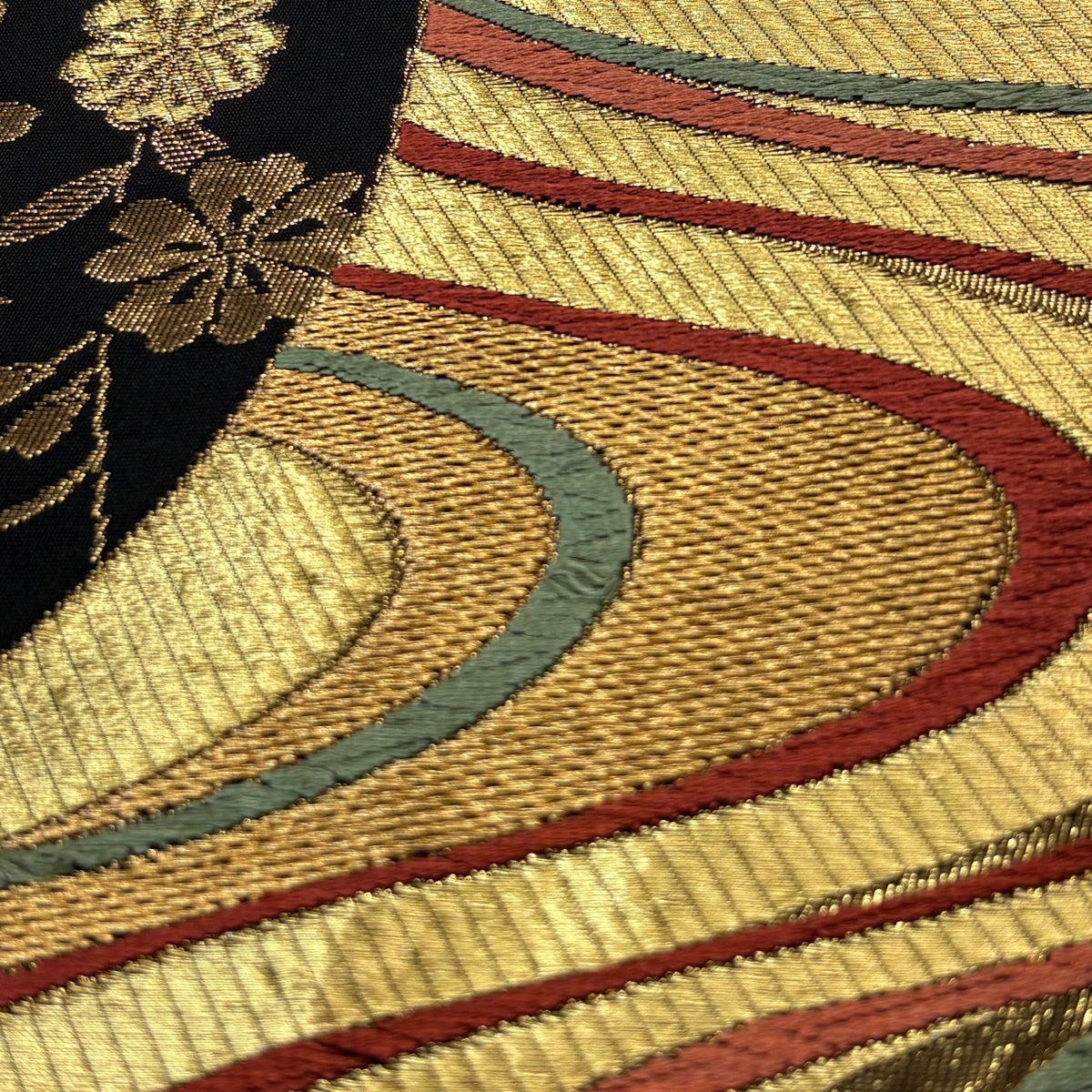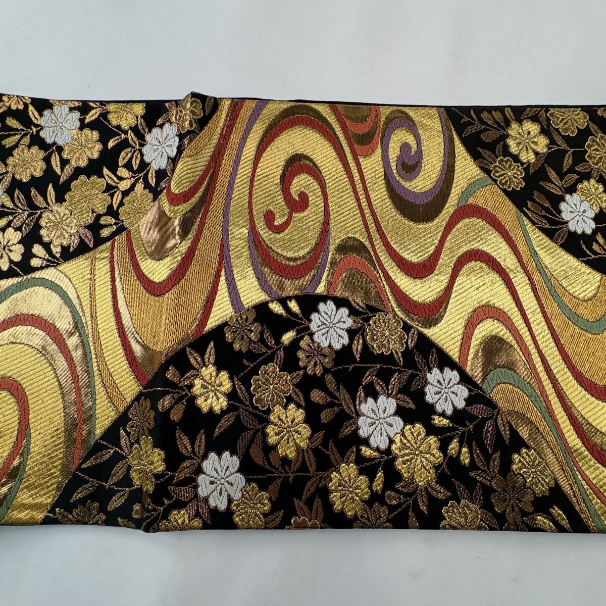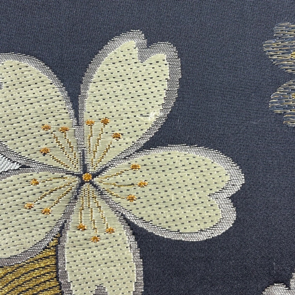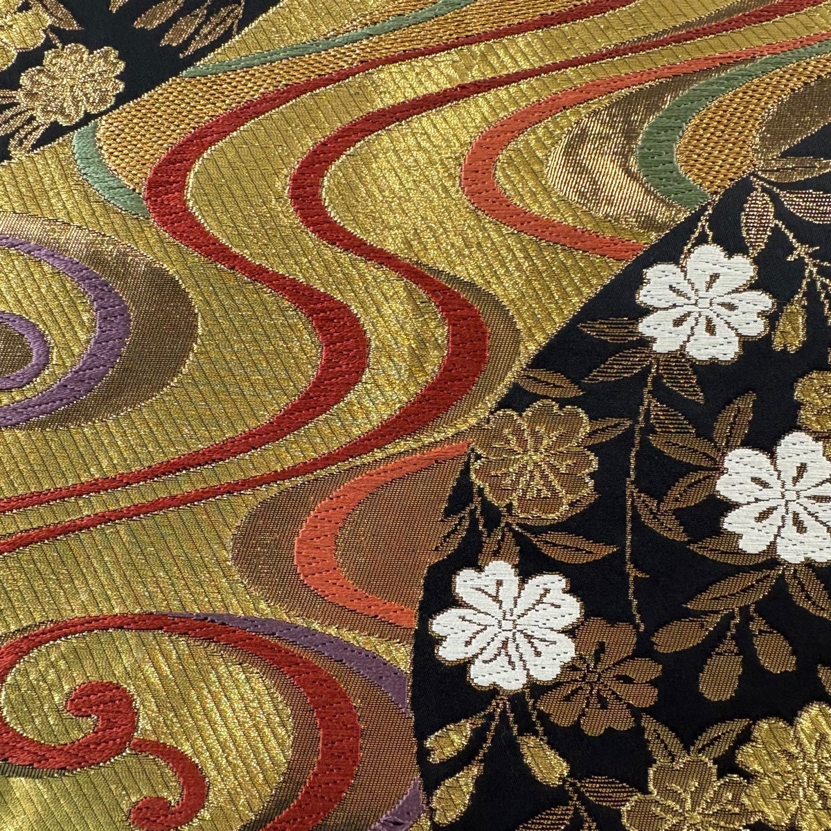 袋帯 秀品 桜 束ね熨斗 金糸 箔 墨色 六通 正絹