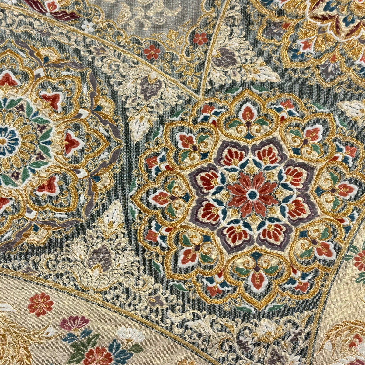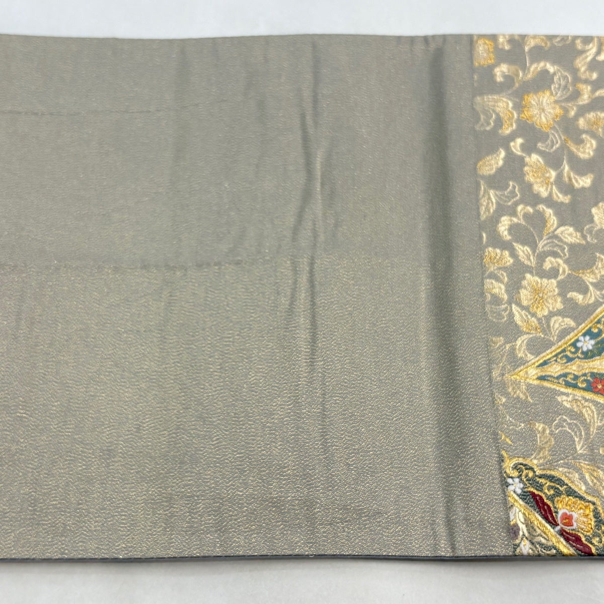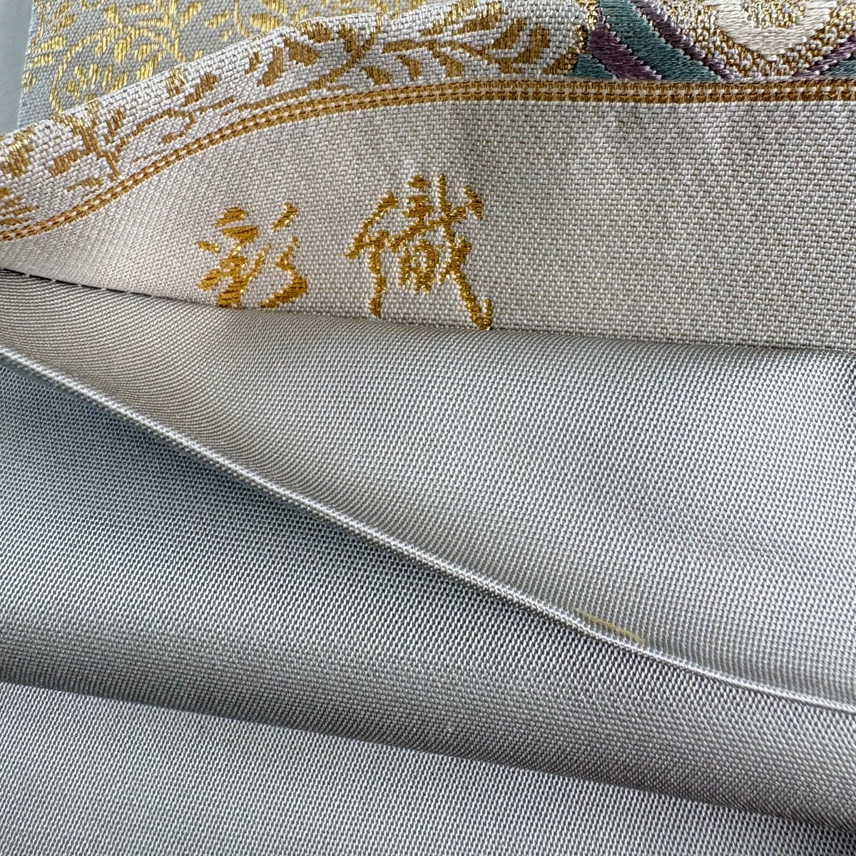 【美品】 袋帯 秀品 彩織 蜀江華文 草花 金糸 箔 灰色 六通 正絹