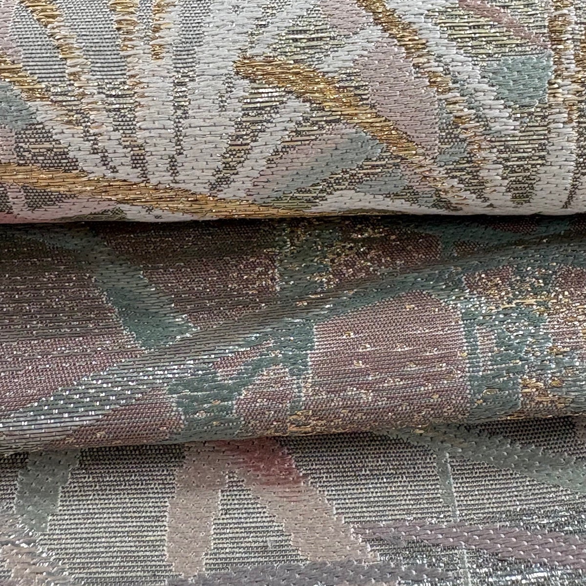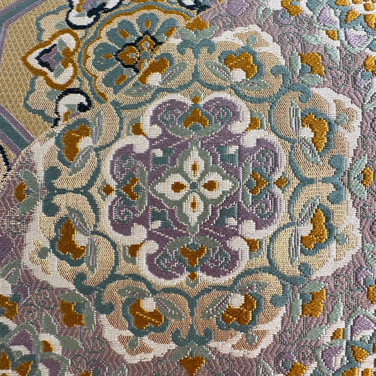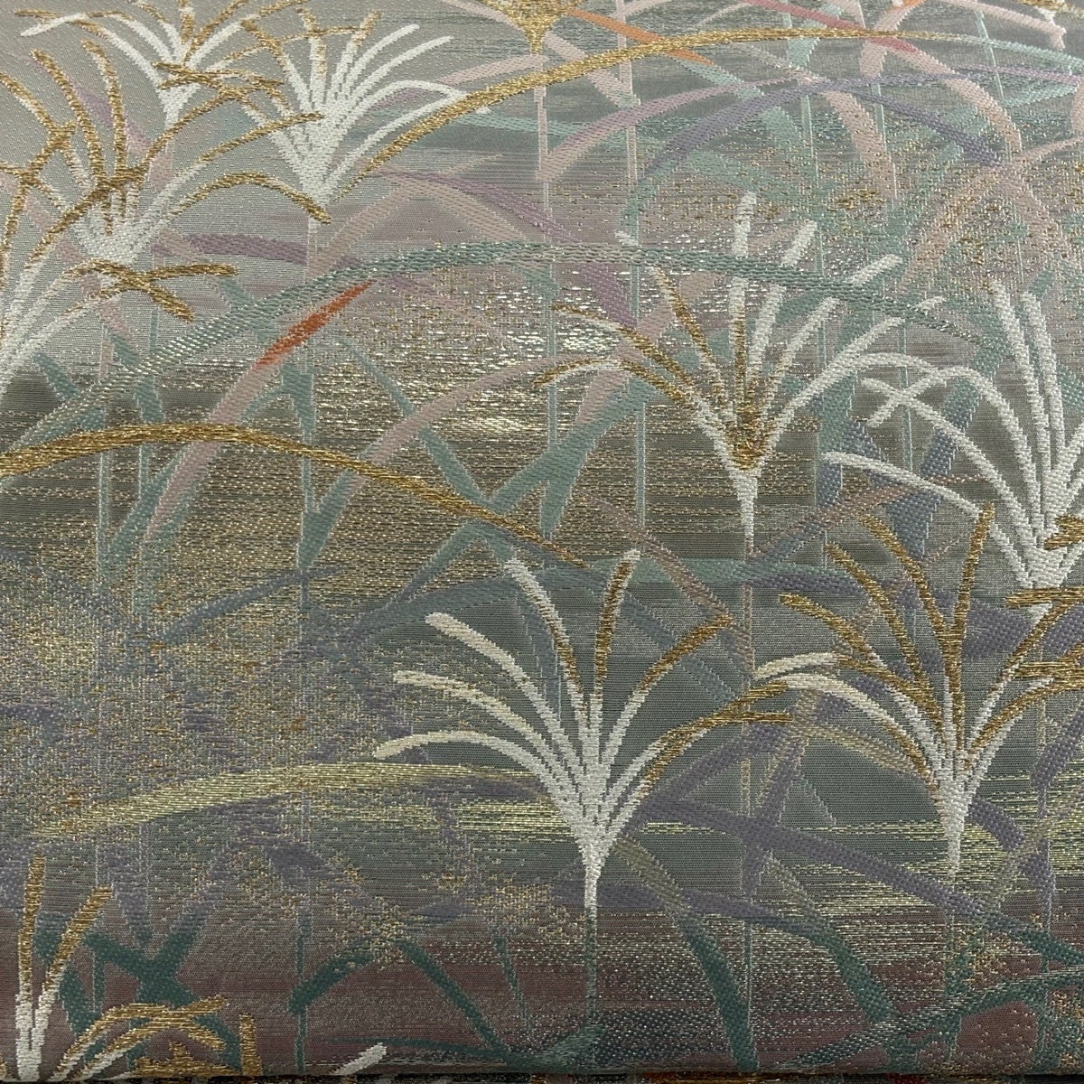 【美品】 袋帯 秀品 彩織 蜀江華文 草花 金糸 箔 灰色 六通 正絹