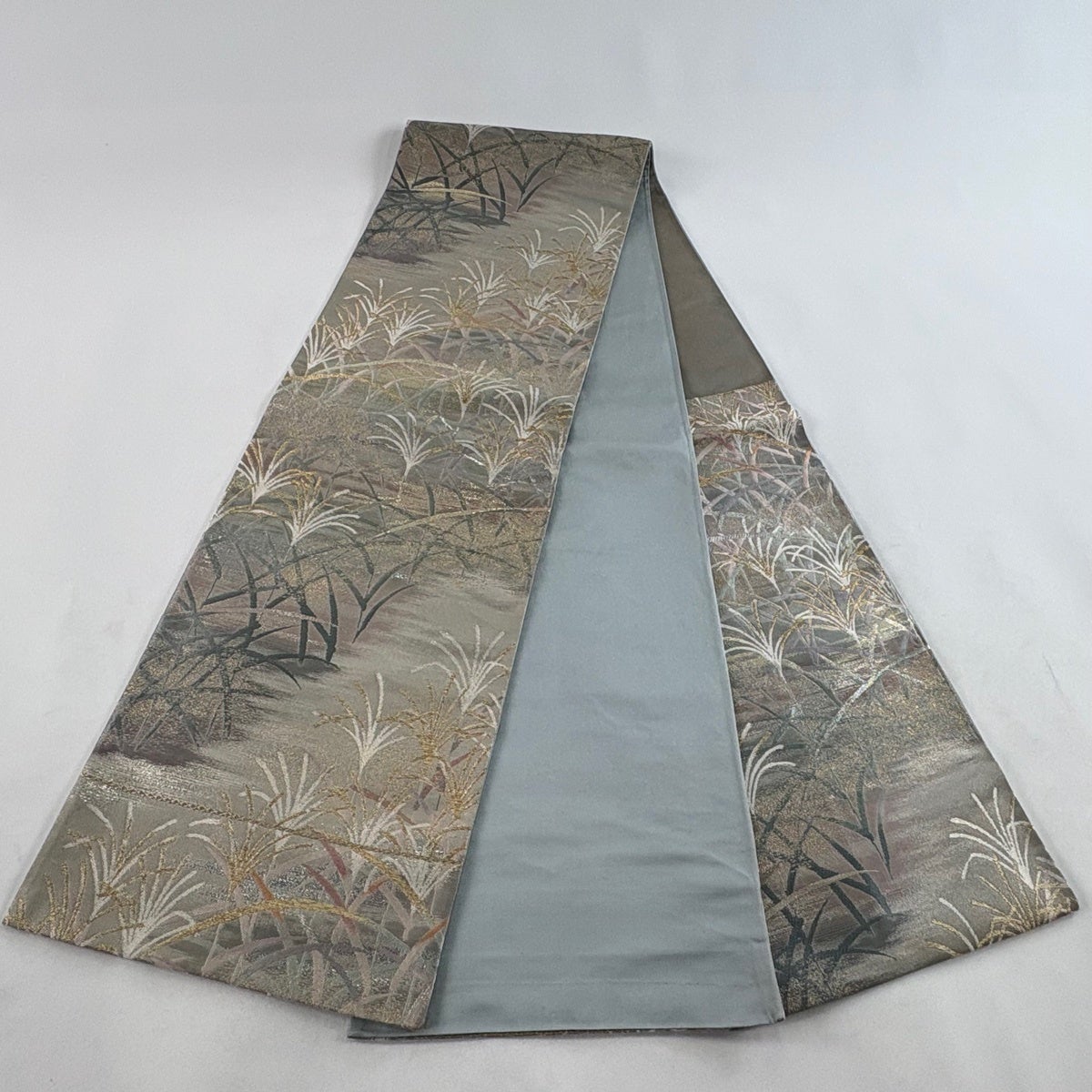 50%OFF 【美品】 袋帯 秀品 夏帯 葉柄 箔 クリーム 六通 正絹 K50