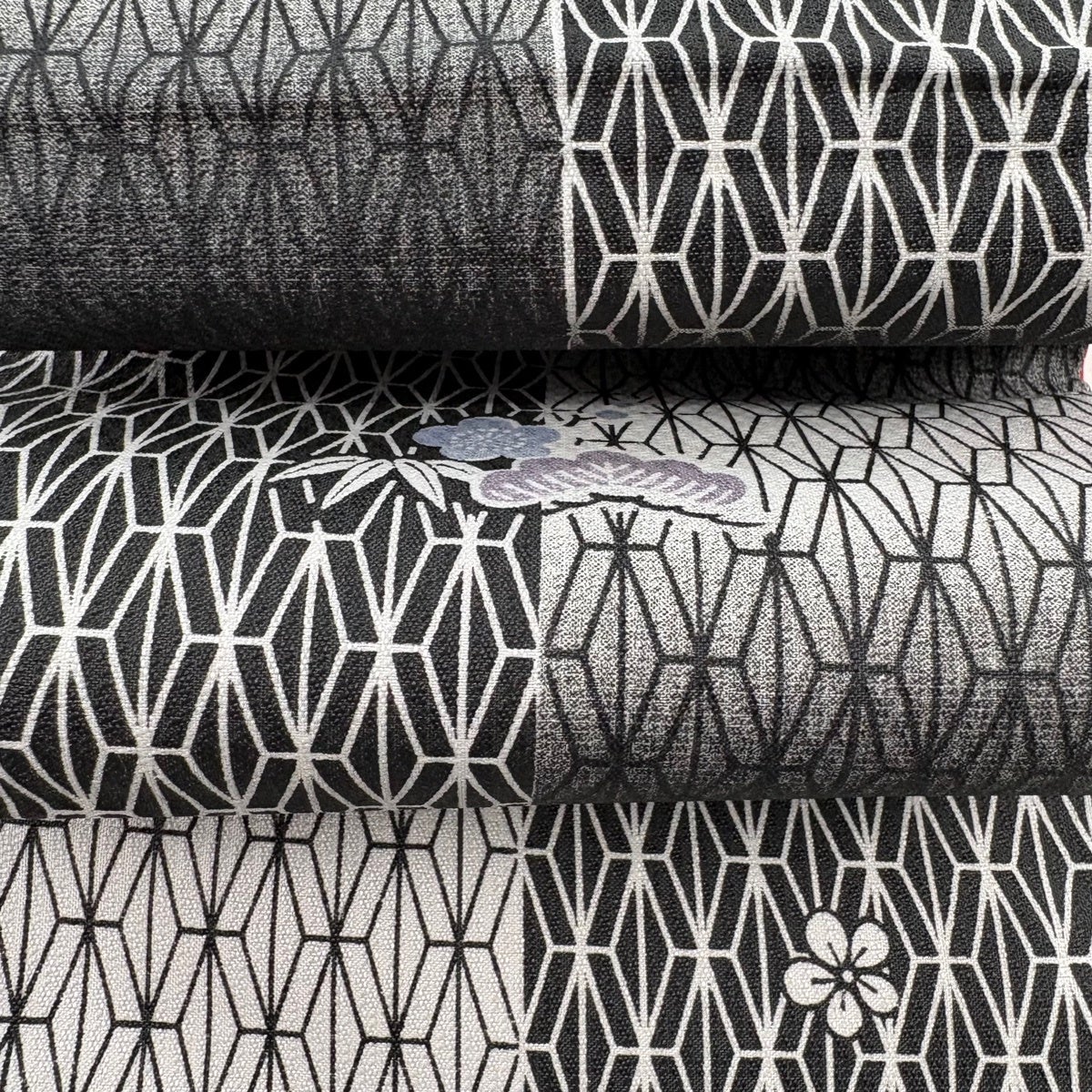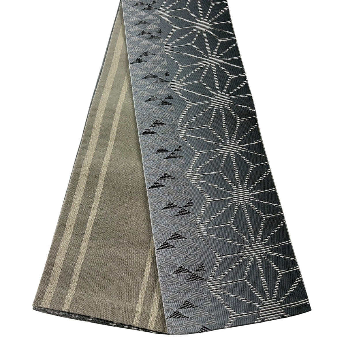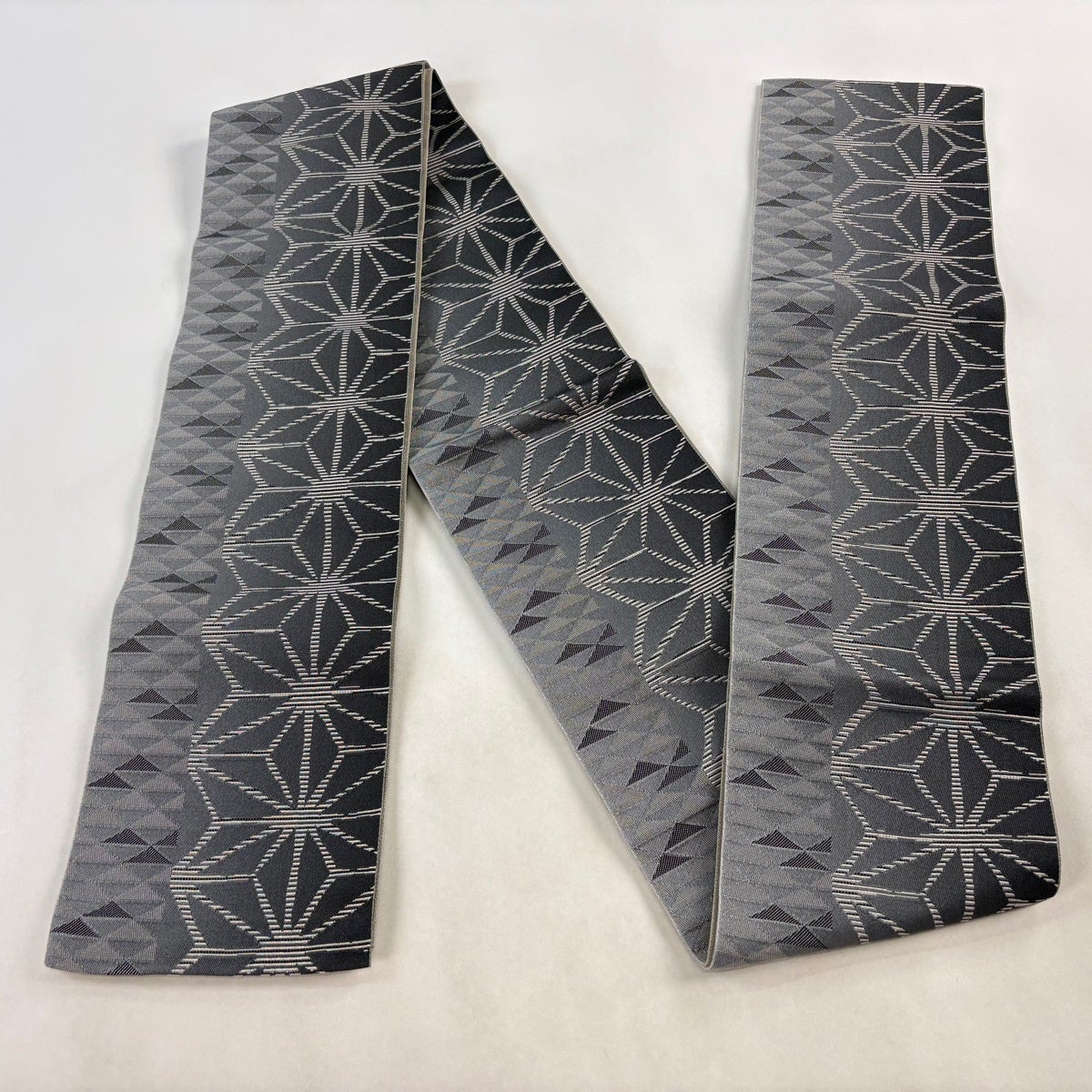 【美品】半幅帯 優品 麻の葉 鱗 灰色 化繊