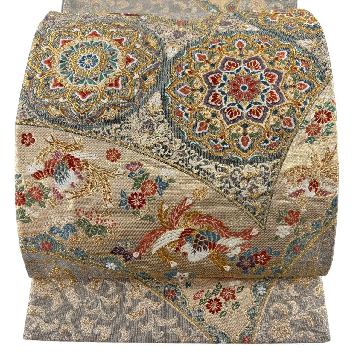 【美品】 袋帯 秀品 華文 花鳥 金色 六通 正絹