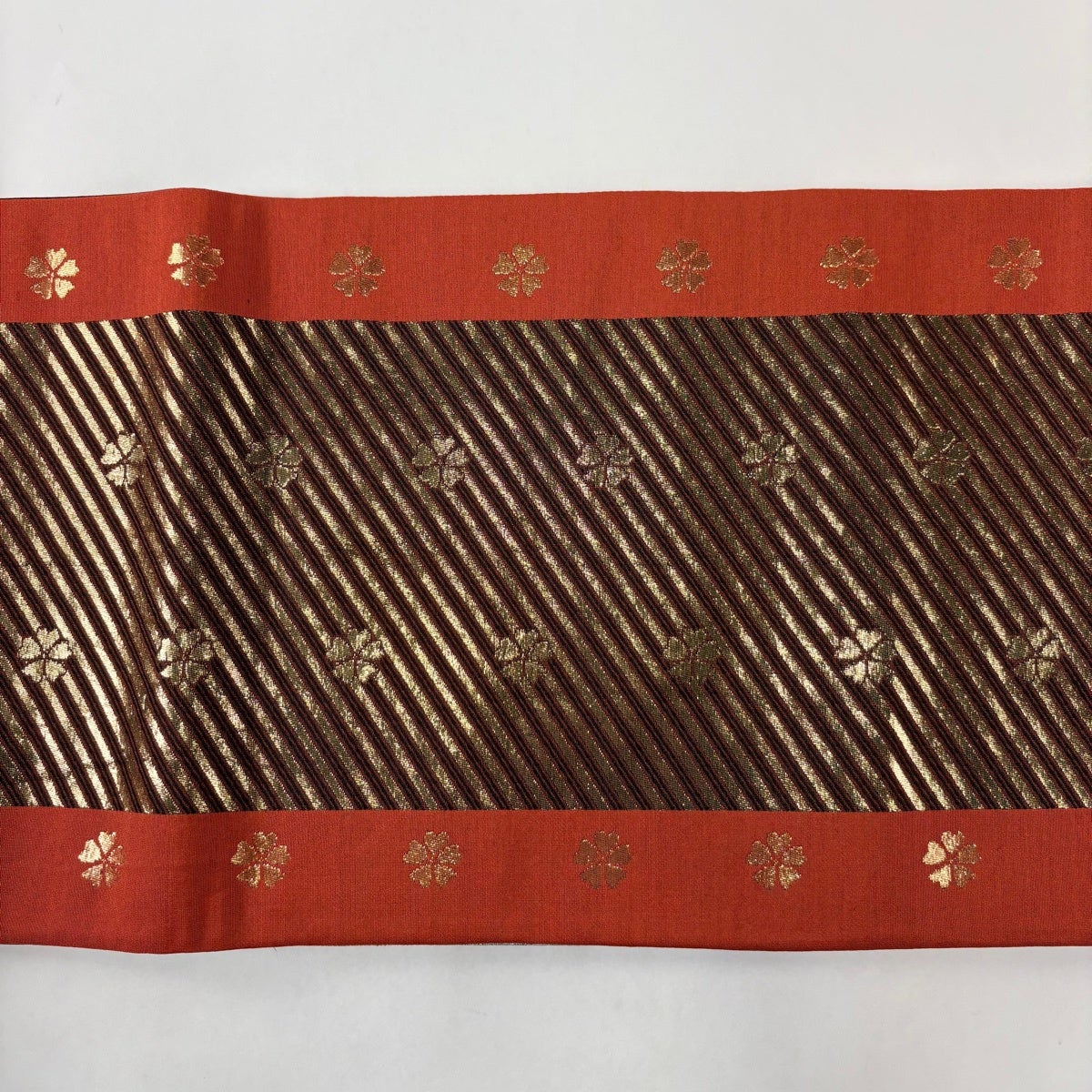 50%OFF 【美品】 袋帯 秀品 草花 縞 焦茶色 六通 正絹 K50