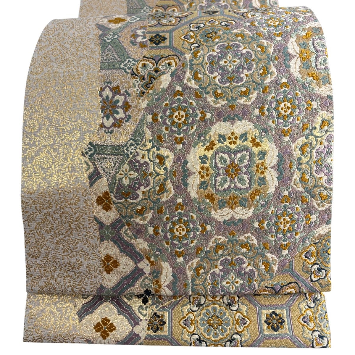 30%OFF 【美品】 袋帯 秀品 天平道長 花鳥 華文 箔 金糸 金色 六通 正絹 K30
