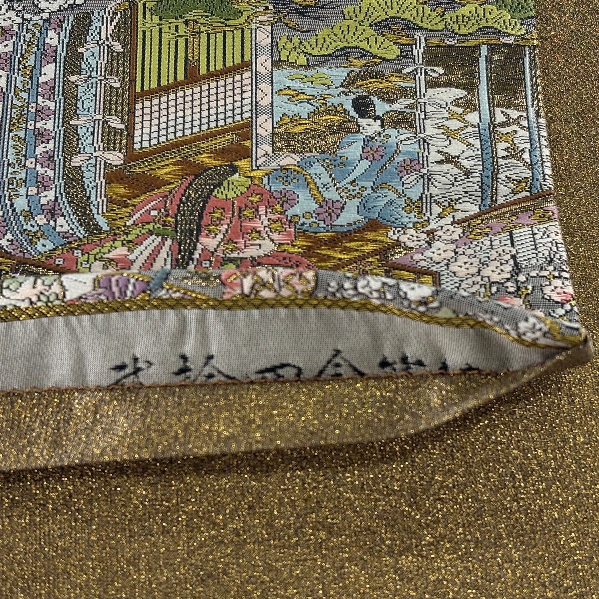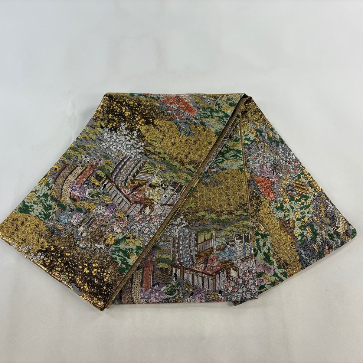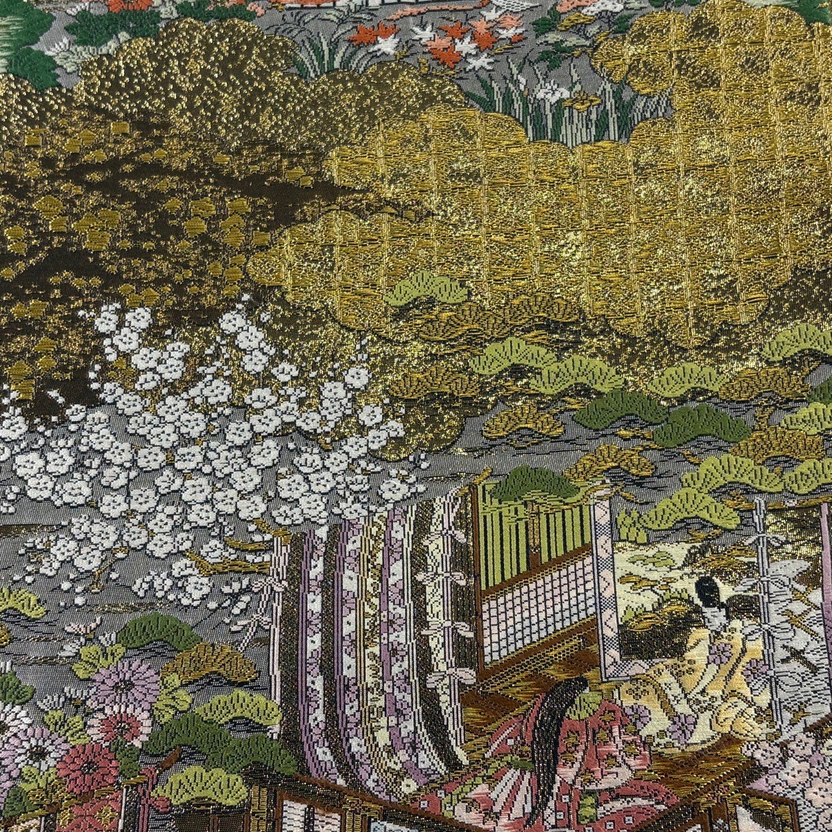 【美品】 袋帯 秀品 人物 雲文 金糸 箔 金色 お太鼓柄 正絹