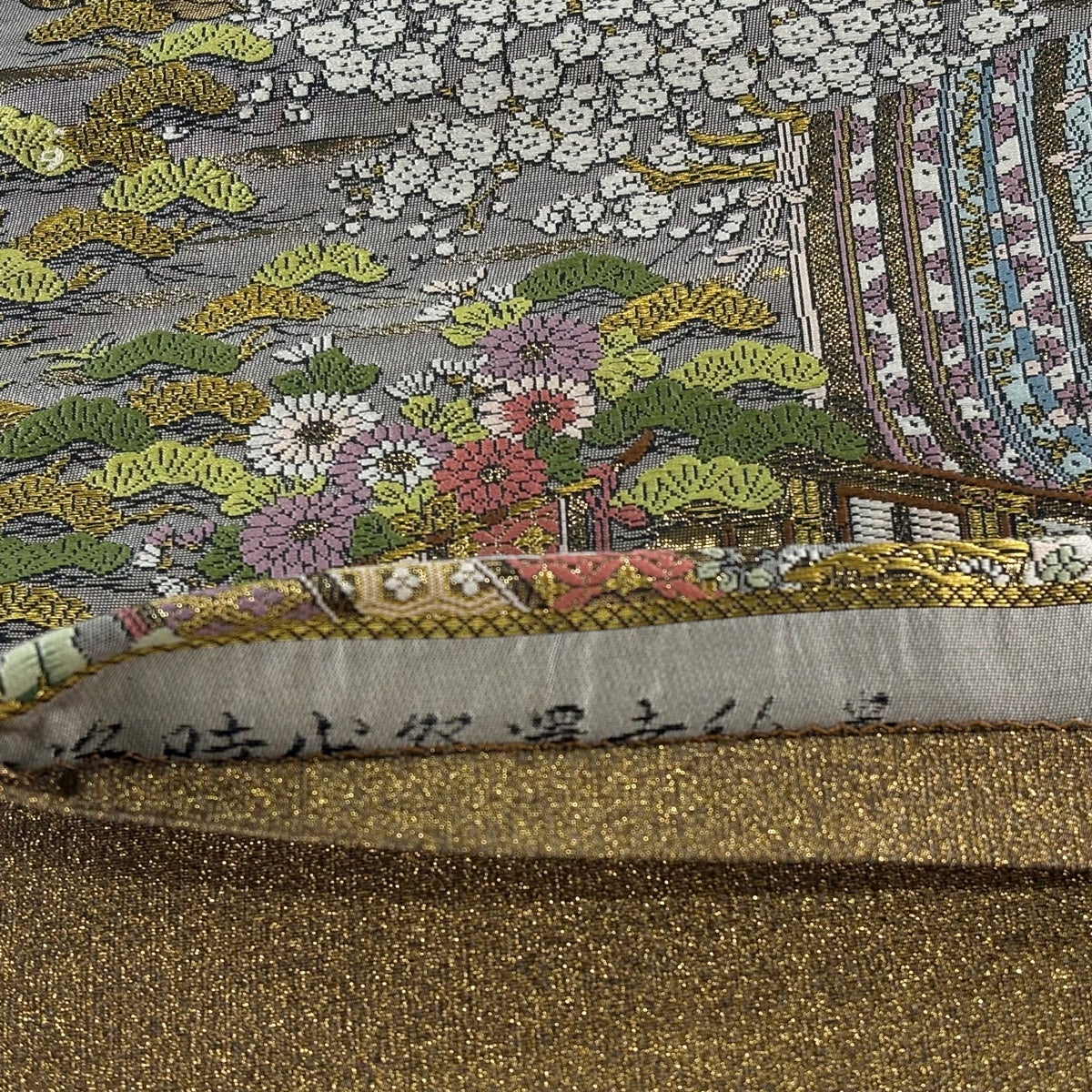 70%OFF 【美品】 袋帯 秀品 山鉾 扇 金銀糸 箔 金色 お太鼓柄 正絹 K70