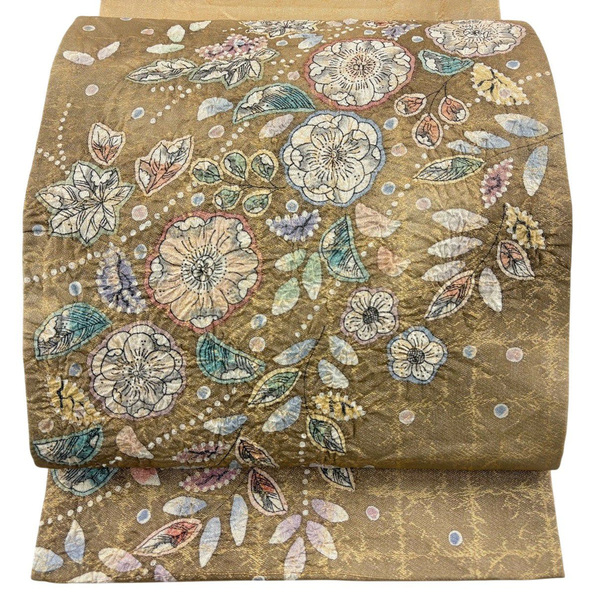 50%OFF 【美品】 袋帯 名品 辻が花柄 銀糸 箔 金色 お太鼓柄 正絹 K50