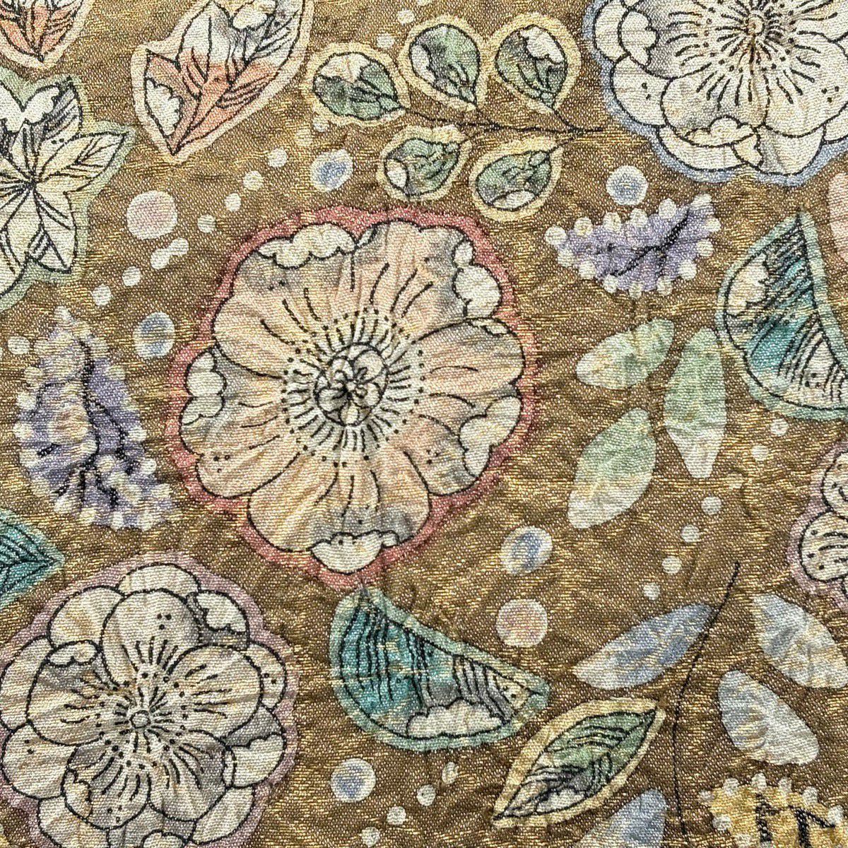 【最終価格】 70%OFF 【美品】 袋帯 名品 落款あり 辻が花柄 金糸 箔 茶色 お太鼓柄 正絹 K70