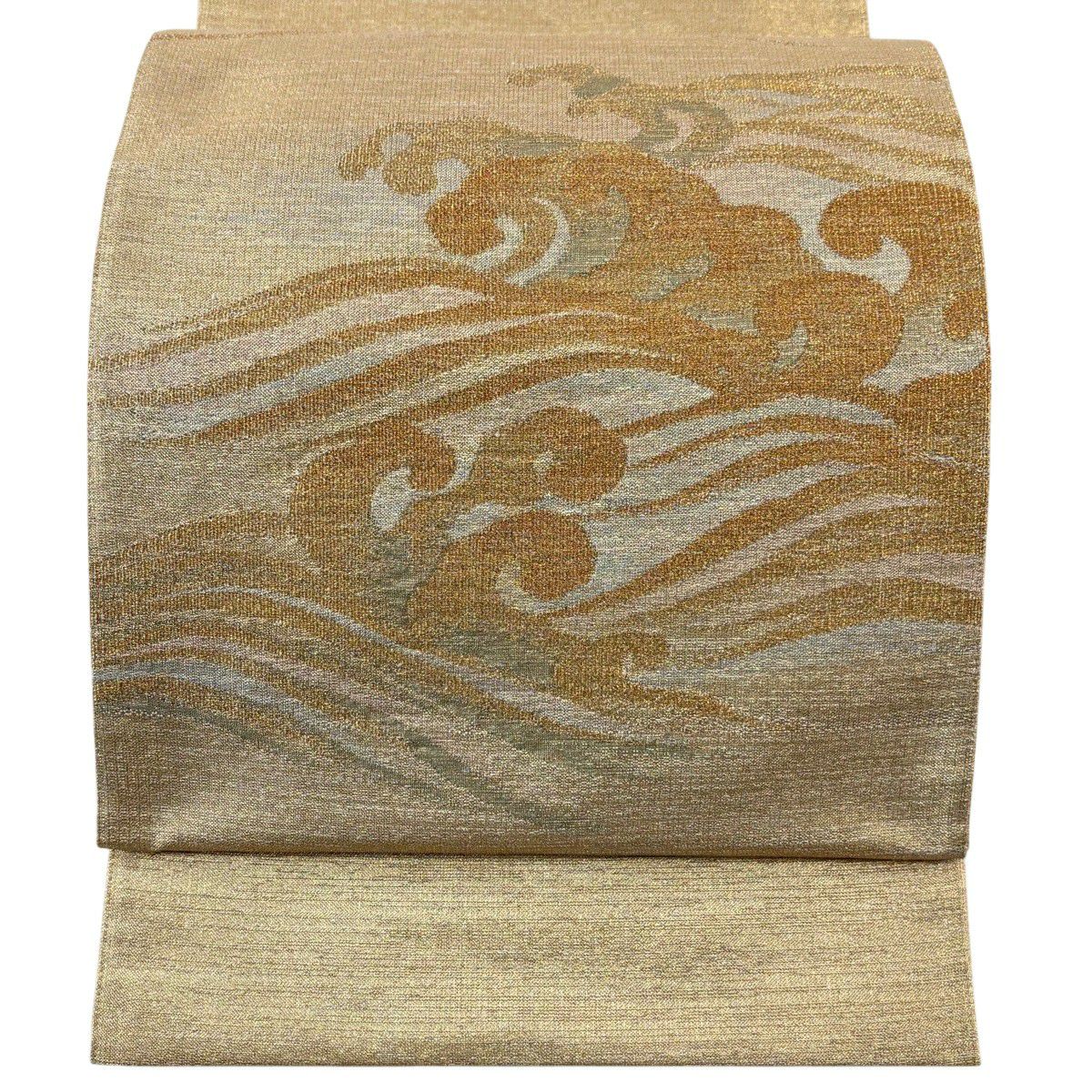 50%OFF 【美品】 袋帯 秀品 波頭 金糸 箔 金色 お太鼓柄 正絹 K50