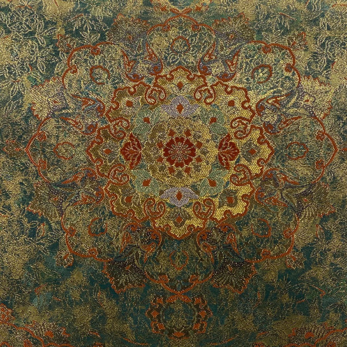 【美品】 袋帯 秀品 草花 金糸 箔 青緑 六通 正絹