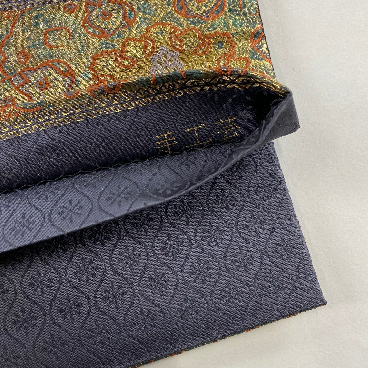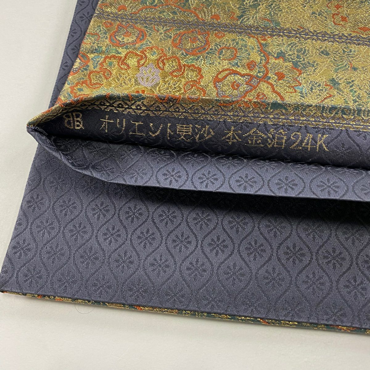 63%OFF 袋帯 秀品 秋草 唐織 箔 オレンジ 六通 正絹 K50