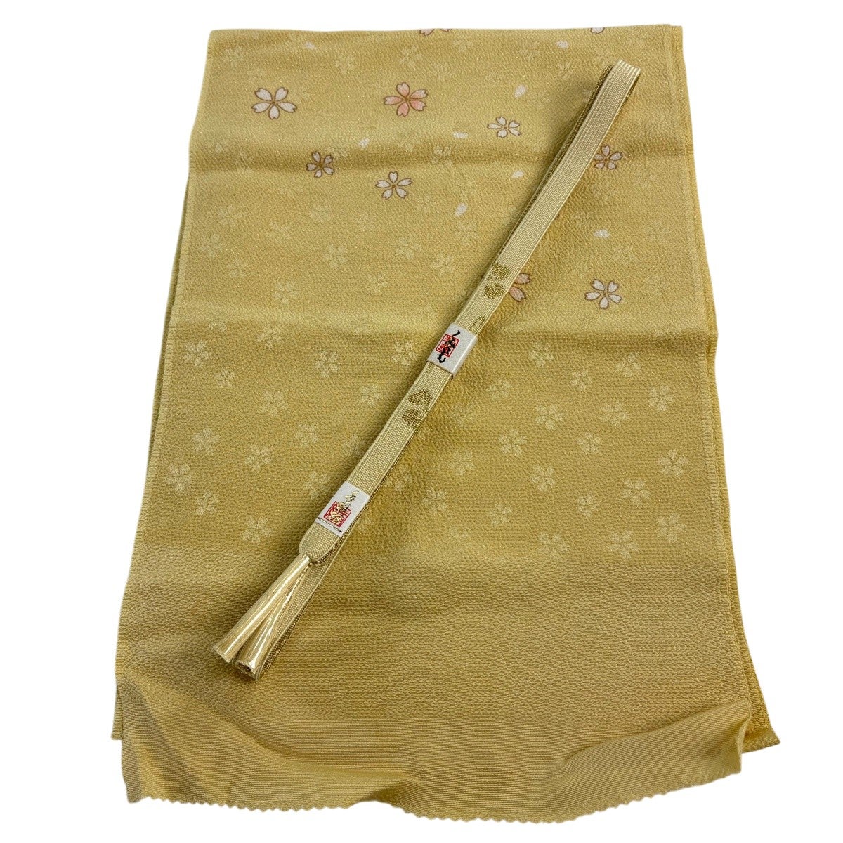 【美品】和装セット 優品 帯締め帯揚げ2点セット 桜 金通し 薄黄土色 正絹 和装小物