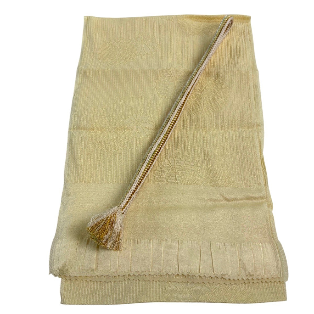 【美品】和装セット 優品 帯締め帯揚げ2点セット 地紋 薄黄 正絹 和装小物
