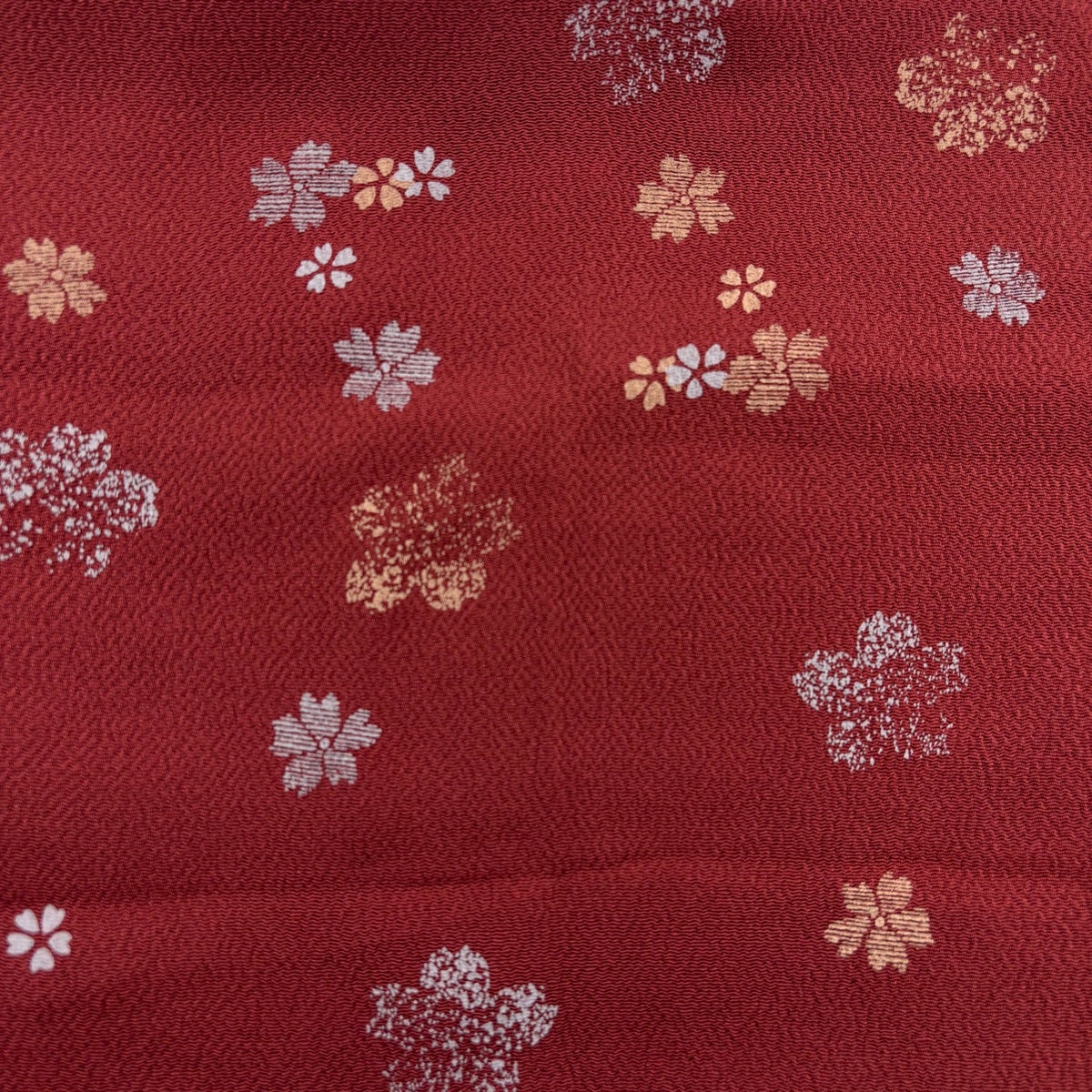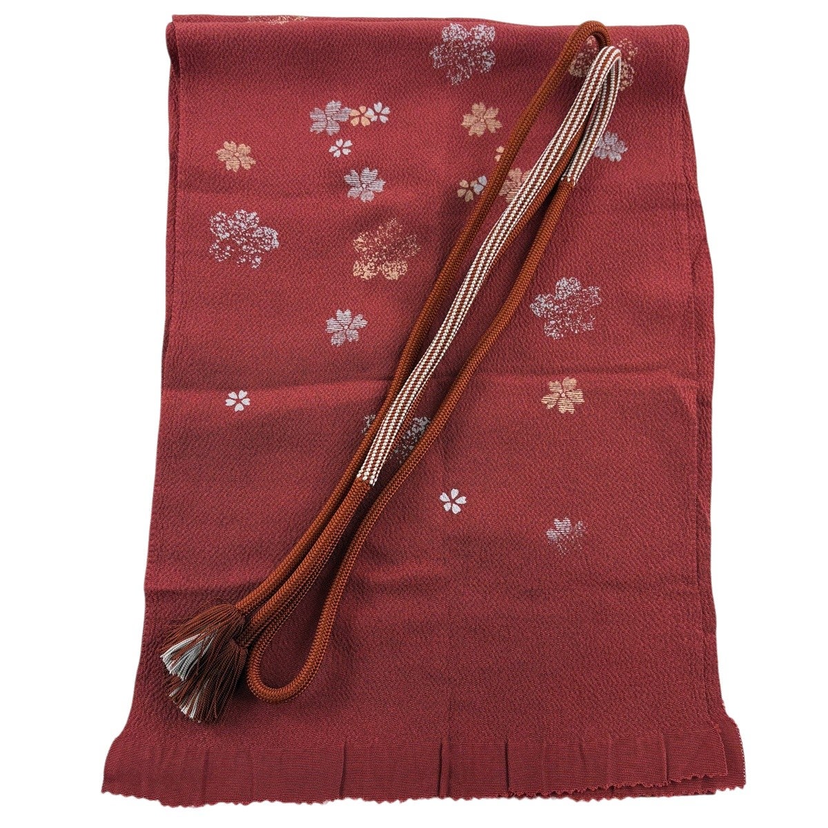 【美品】和装セット 優品 帯締め帯揚げ2点セット 桜 縮緬 赤茶 正絹 和装小物