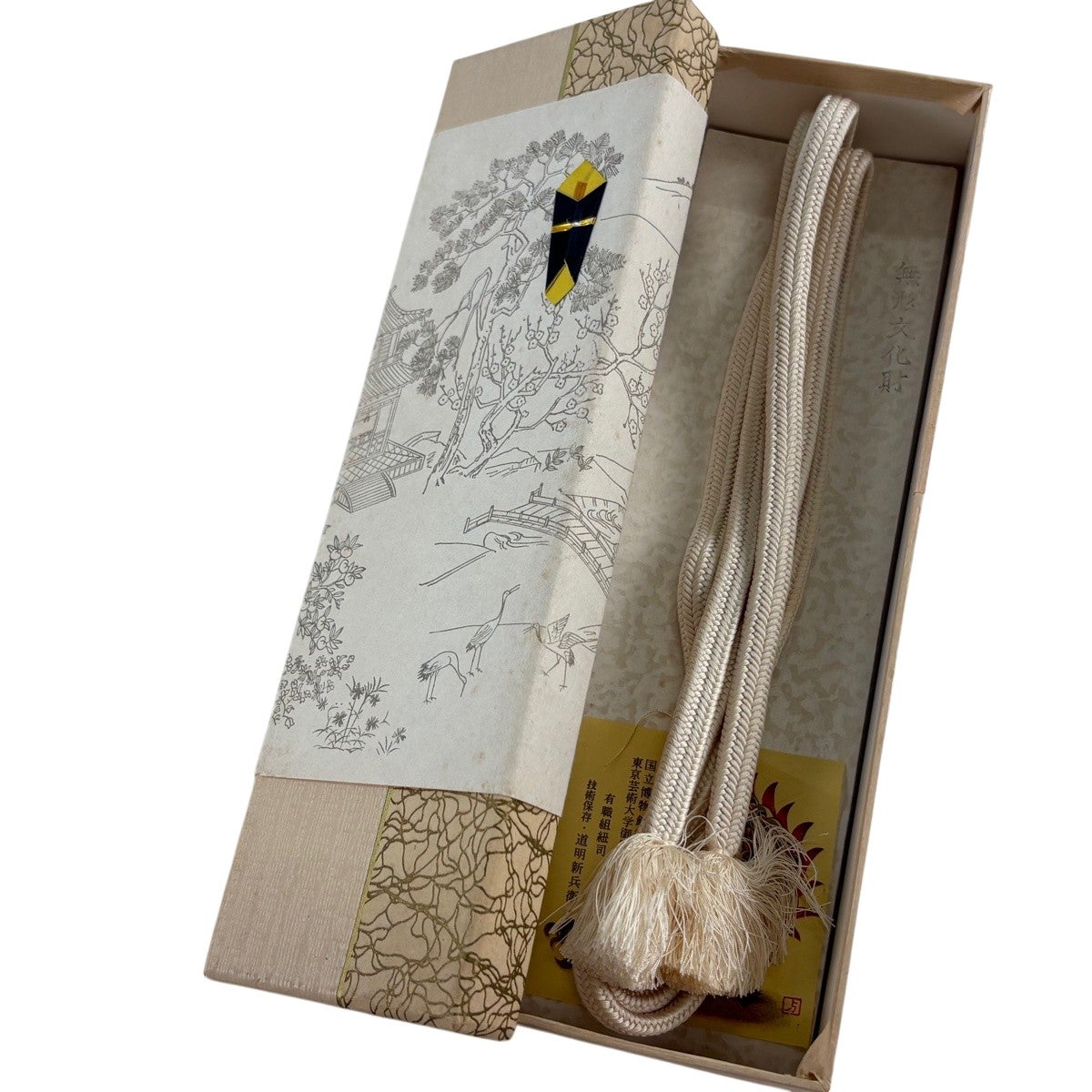【美品】和装セット 逸品 藤林徳扇「華」小物セット 帯締め 帯揚げ 重ね衿 幾何学 金銀彩 クリーム 正絹 和装小物