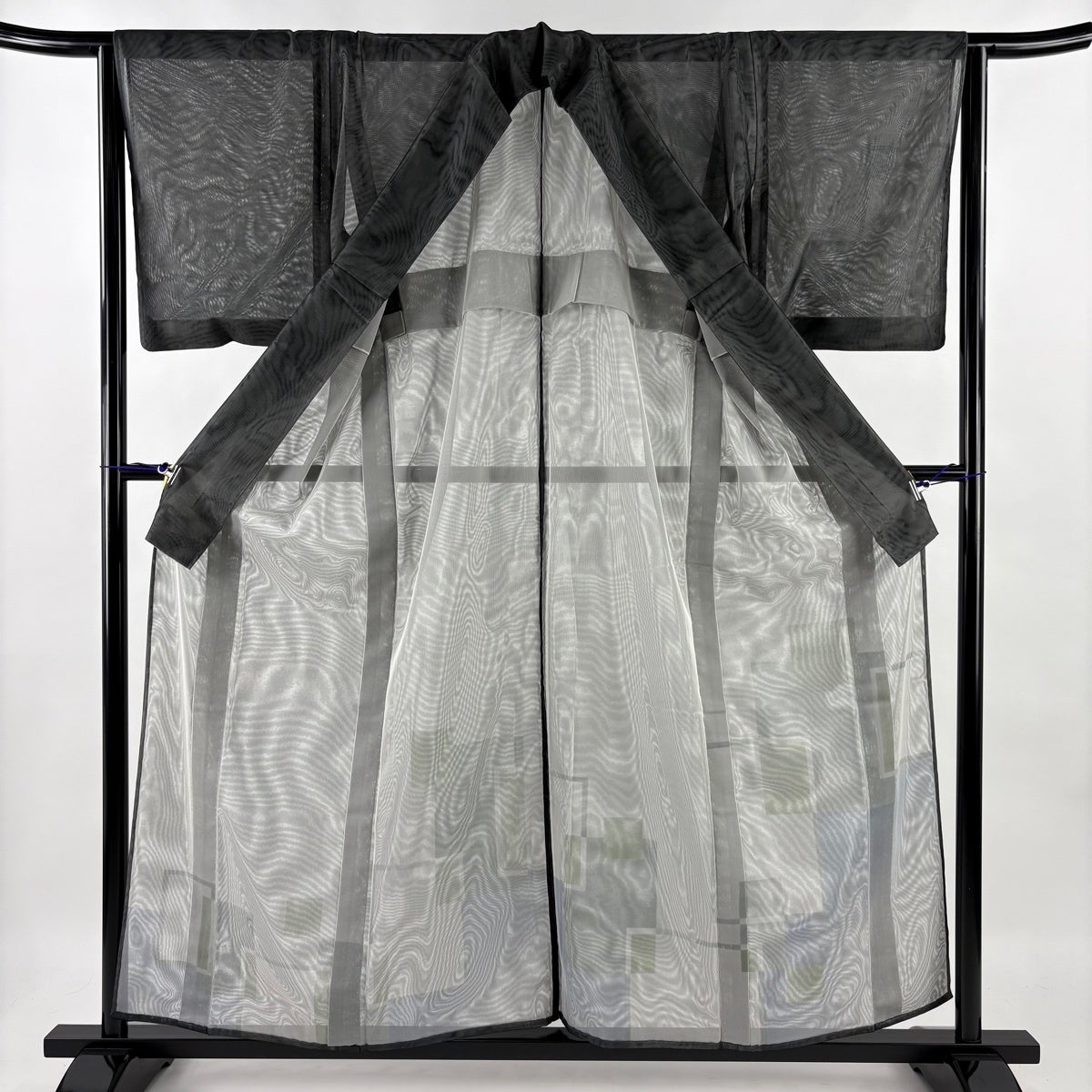 【美品】 名古屋帯 秀品 夏帯 紗 風景 波 ラメ糸 箔 黒灰 正絹