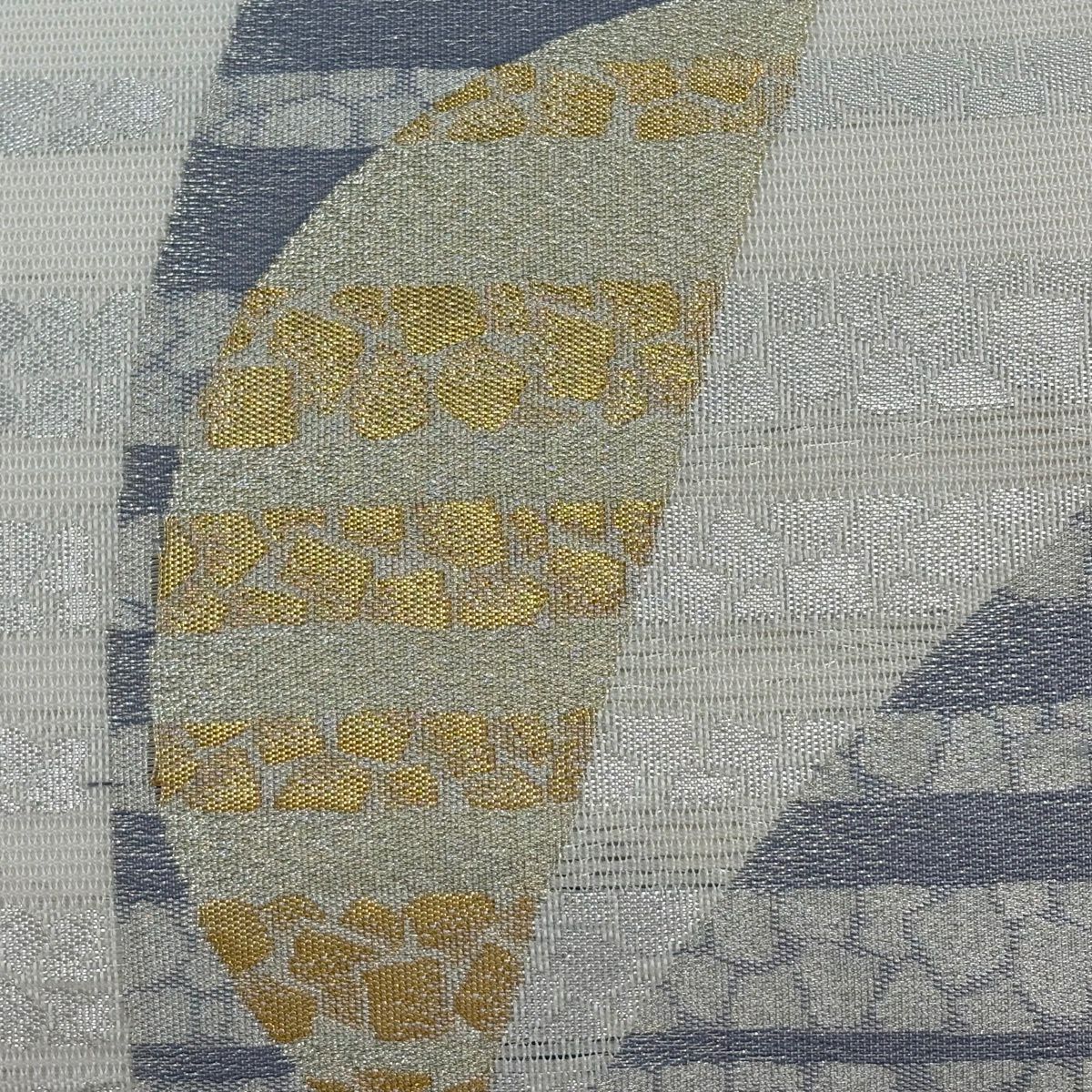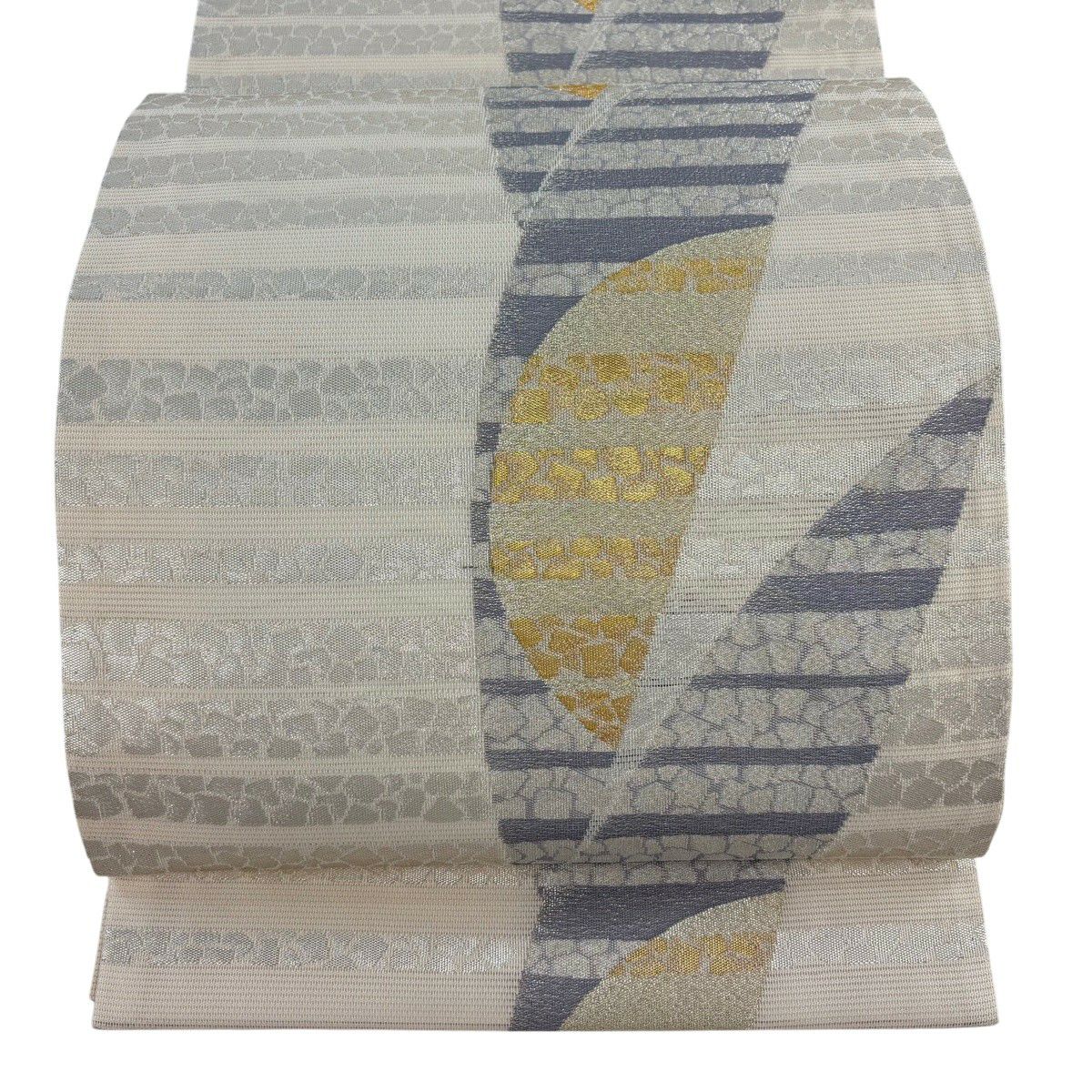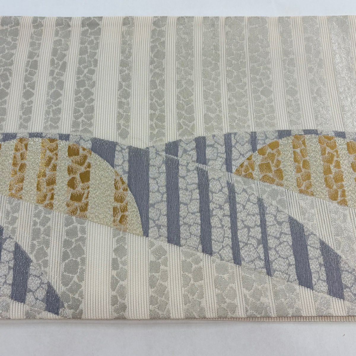 名古屋帯 名品 夏帯 八寸名古屋帯 絽 幾何学模様 縞 金銀糸 灰白 正絹