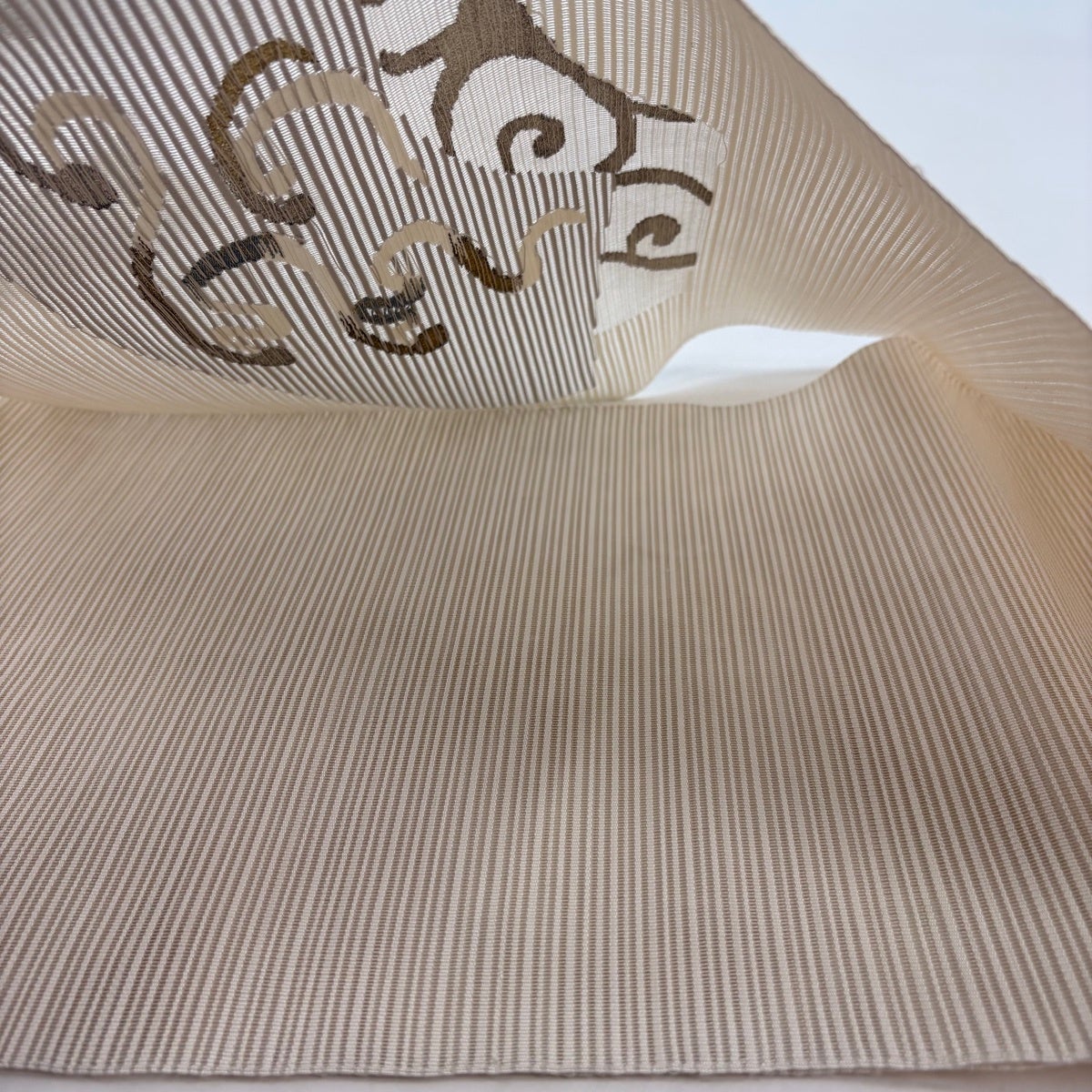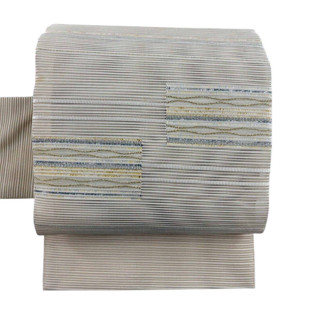 名古屋帯 秀品 夏帯 絽 幾何学 金銀糸 ベージュ 正絹