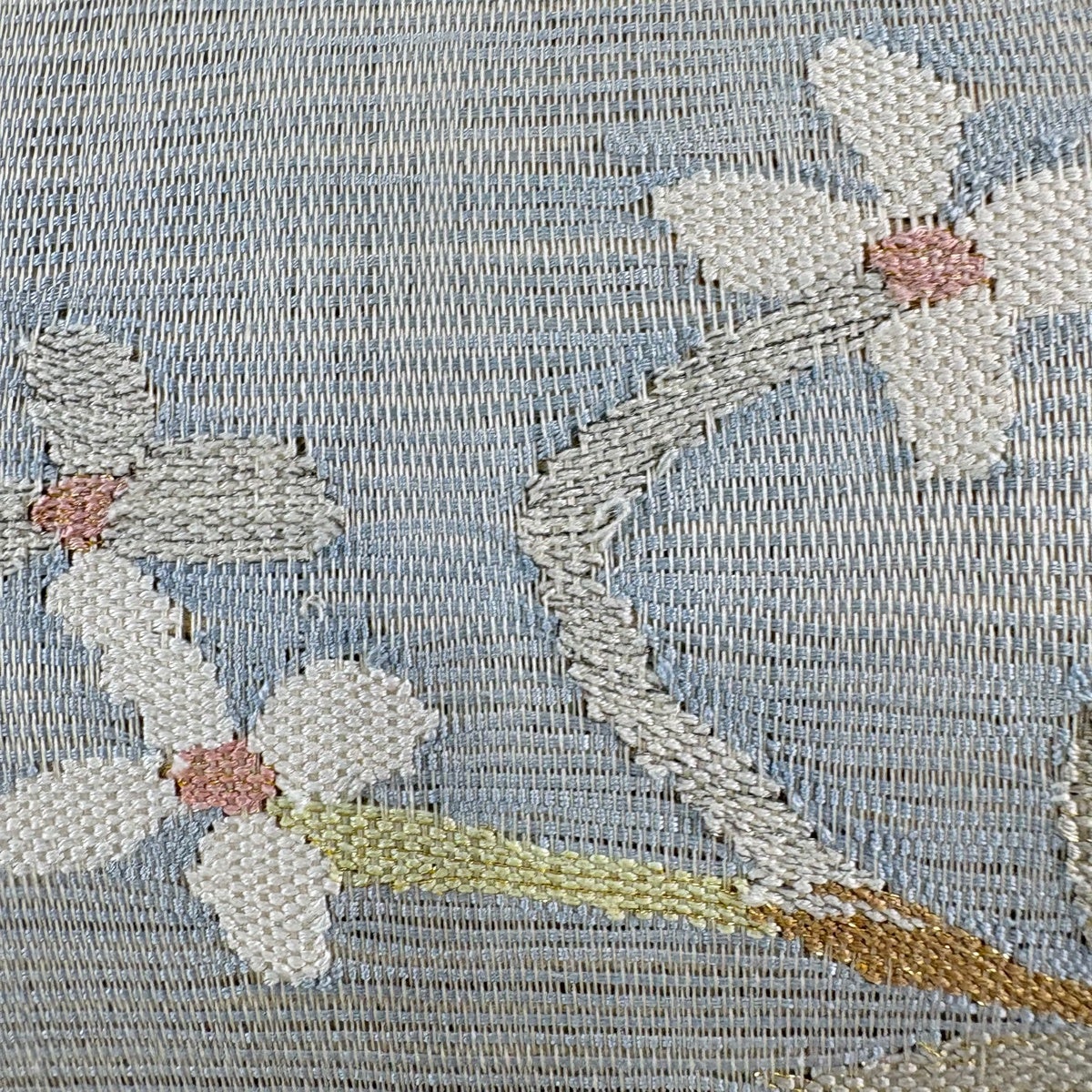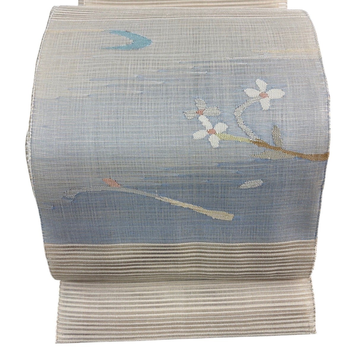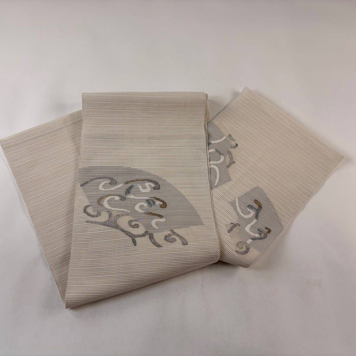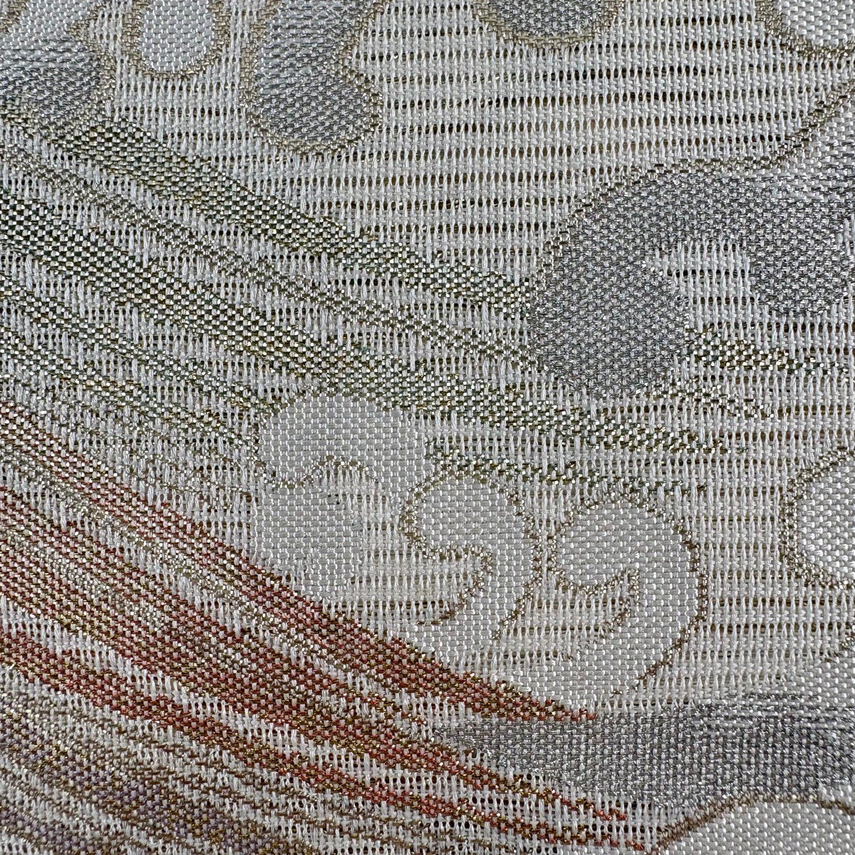 袋帯 秀品 夏帯 絽 檜扇 草花 銀糸 唐織 白 六通 正絹