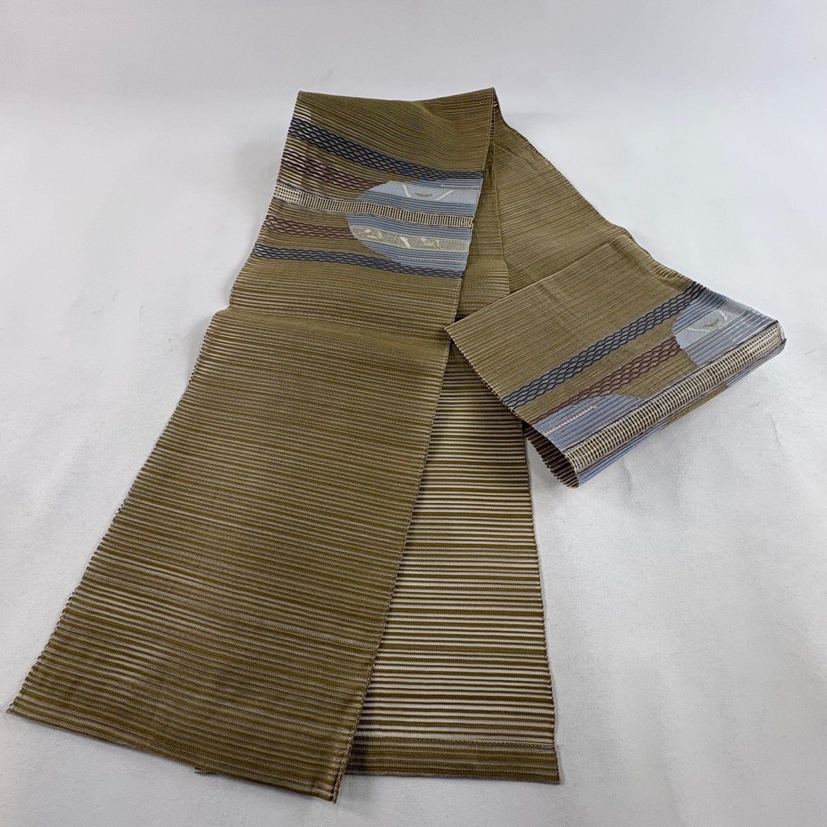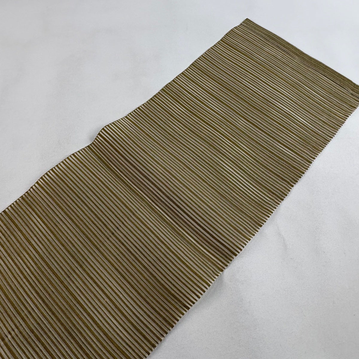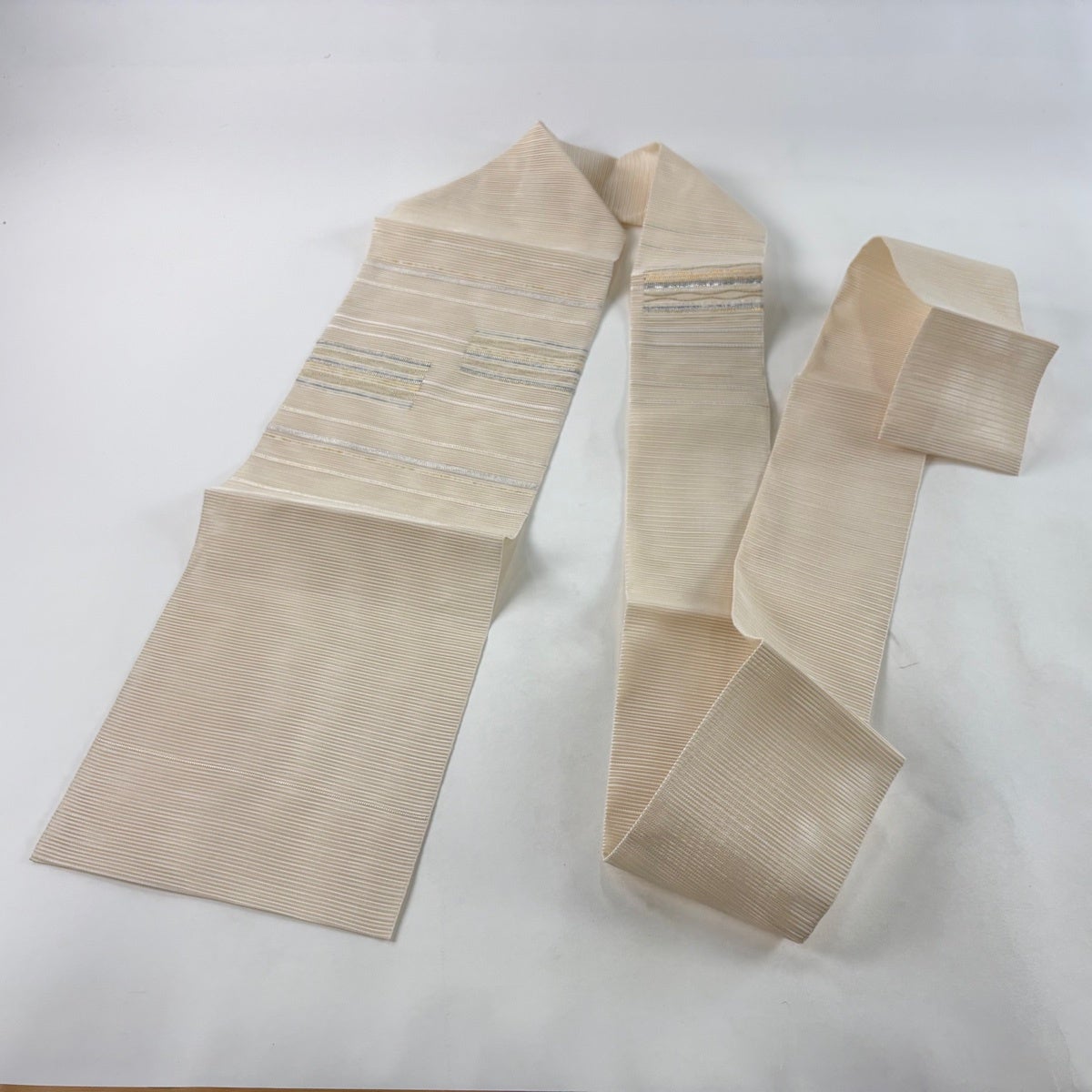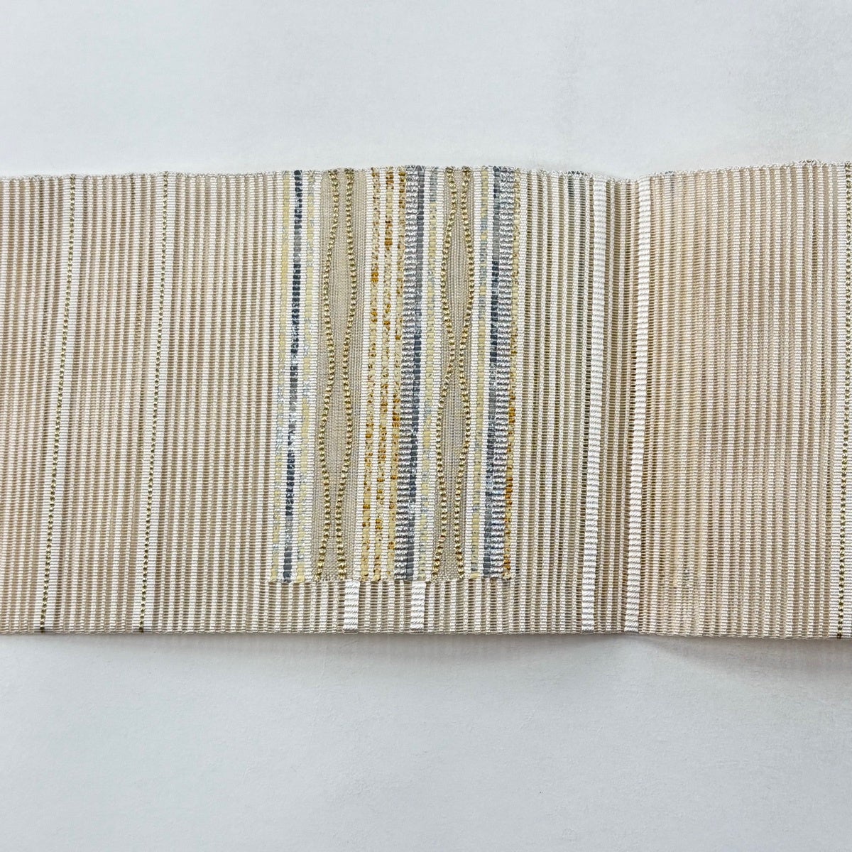 名古屋帯 秀品 夏帯 絽 縞 金銀糸 金銀彩 ベージュ 正絹