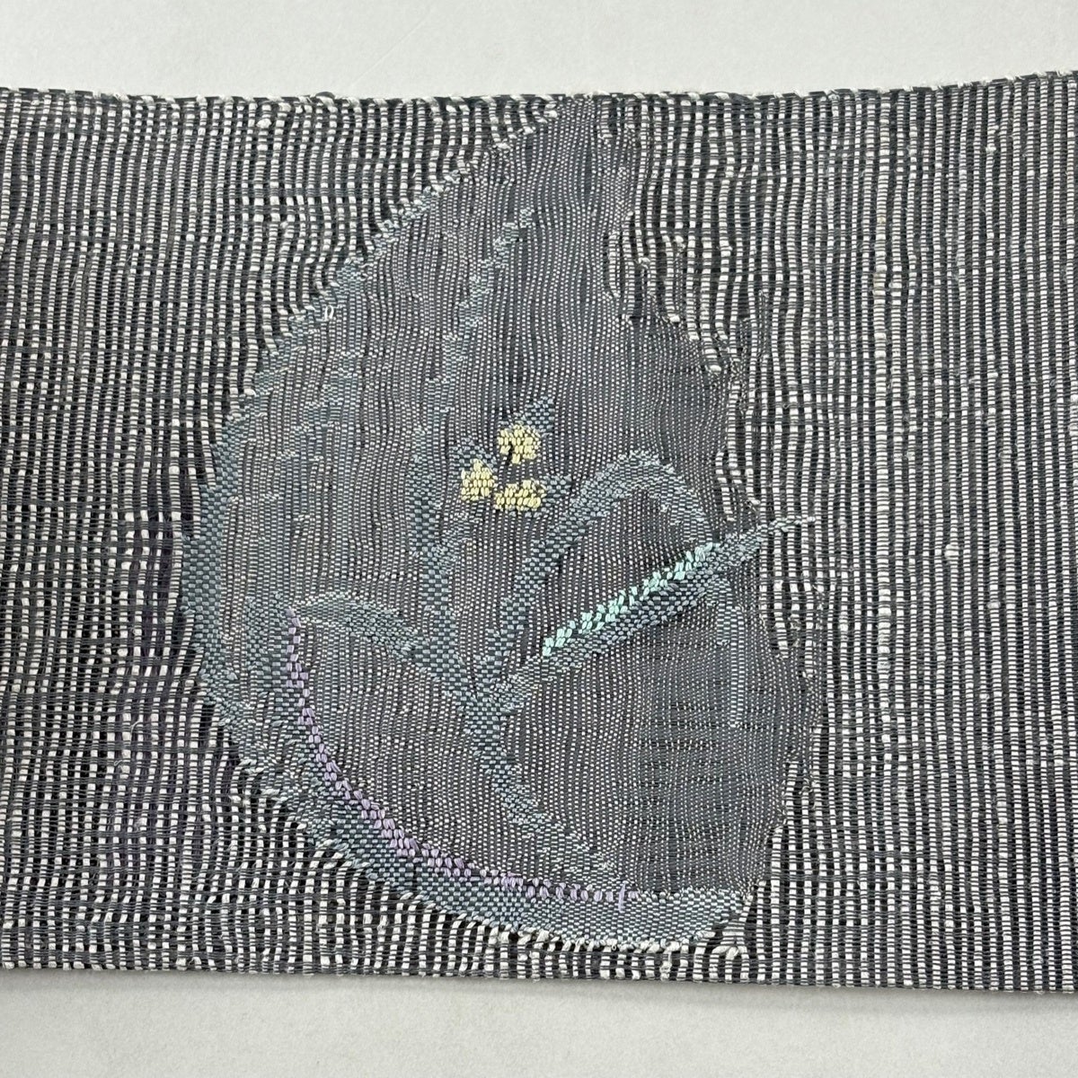 名古屋帯 名品 落款あり 夏帯 絽 バッタ 草花 灰色 正絹