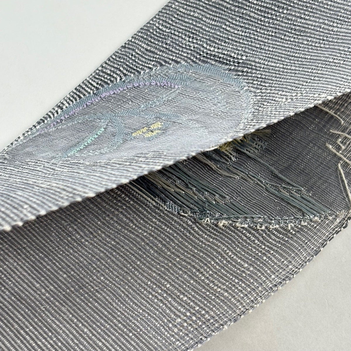 袋帯 名品 夏帯 絽 トンボ 葉柄 銀糸 箔 銀色 六通 正絹