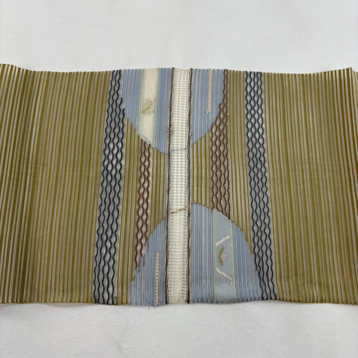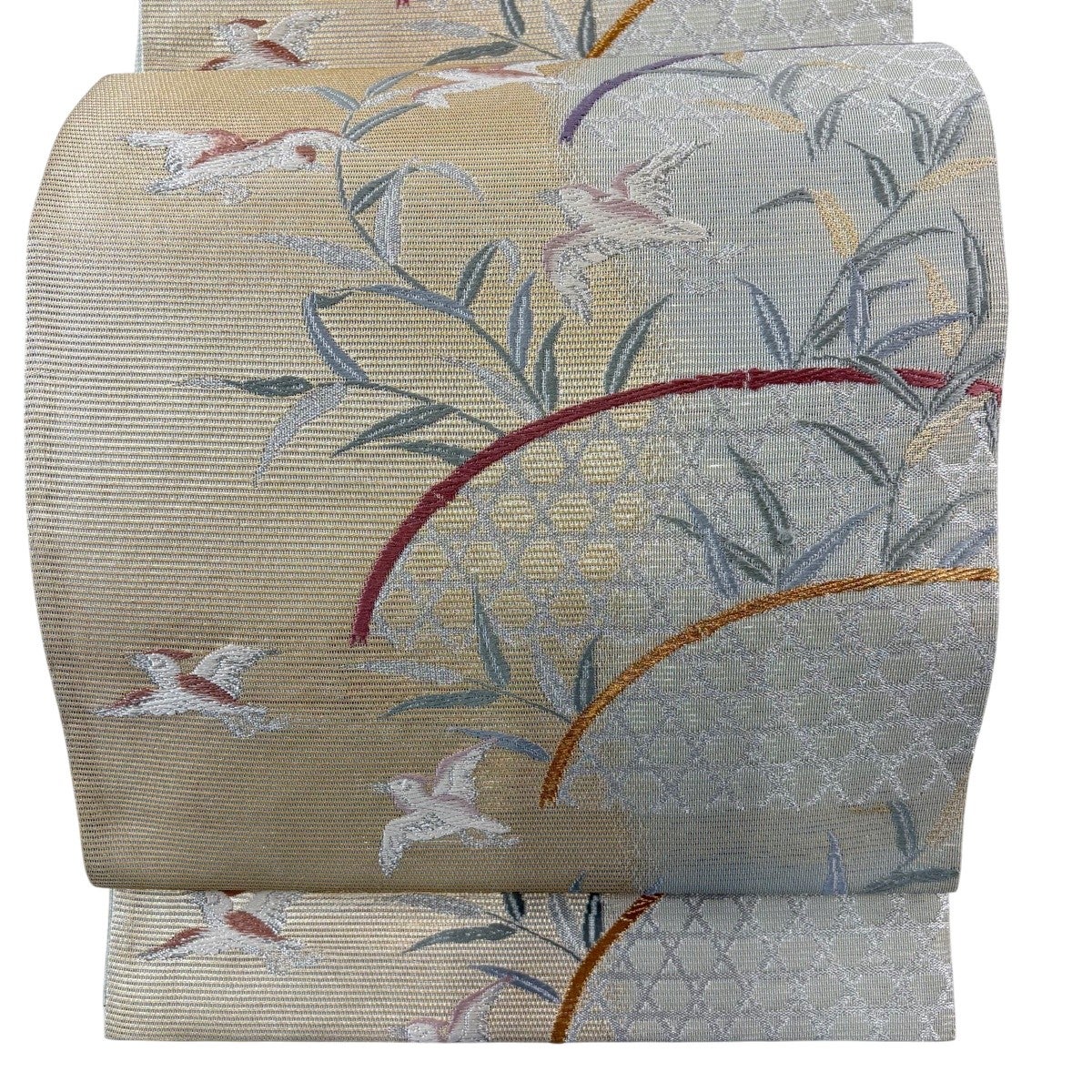 袋帯 秀品 夏帯 絽 幾何学 箔 ベージュ お太鼓柄 正絹