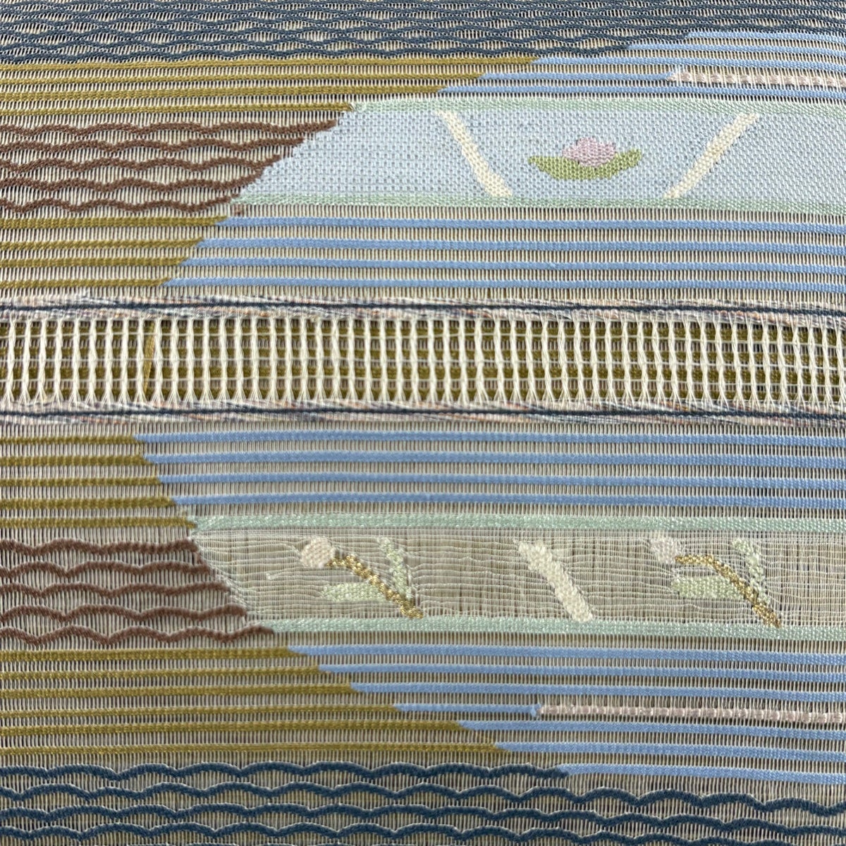 名古屋帯 秀品 夏帯 絽 桔梗 網干 刺繍 箔 クリーム 正絹