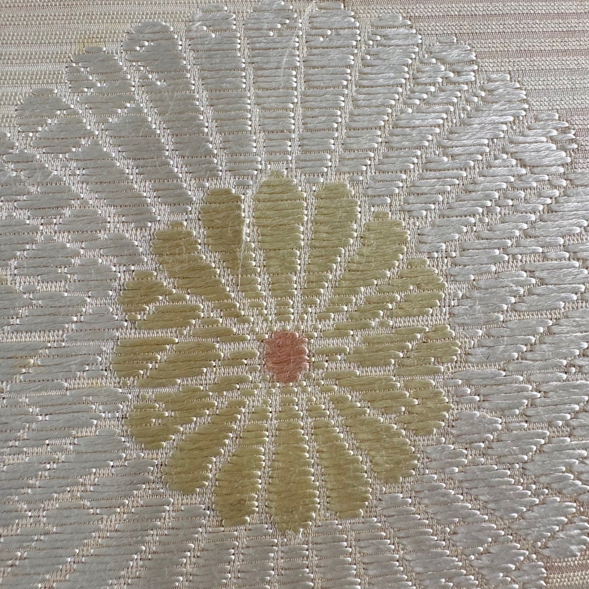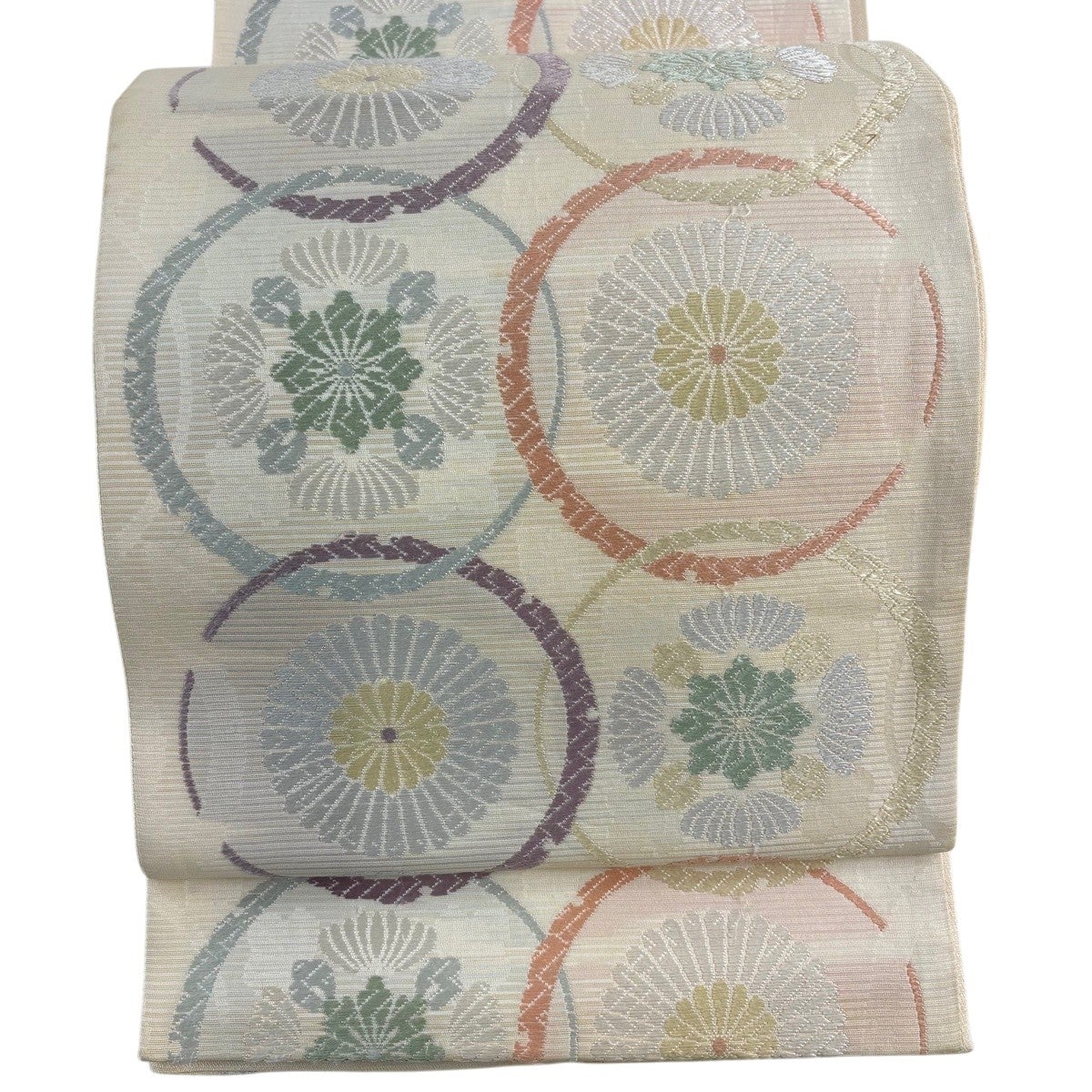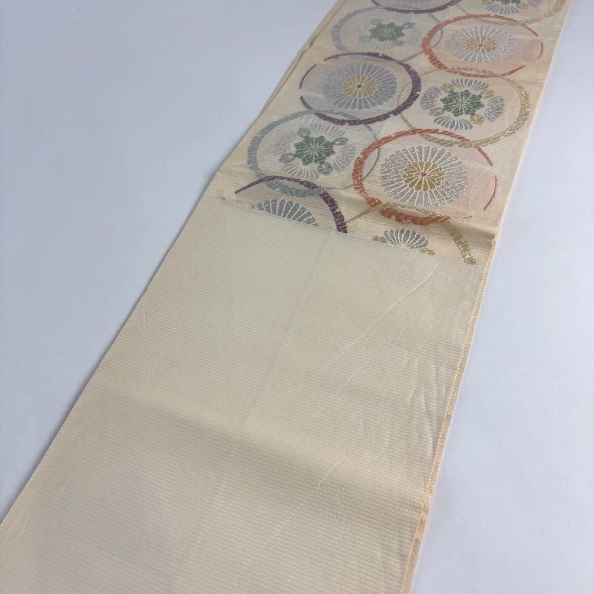 袋帯 秀品 夏帯 絽 菊 丸文 唐織 ベージュ 六通 正絹