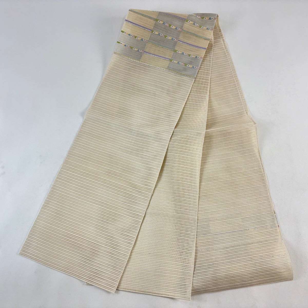 名古屋帯 秀品 夏帯 八寸名古屋帯 松葉仕立て 絽 トンネル仕立て 市松 有職文様 金銀糸 クリーム 正絹