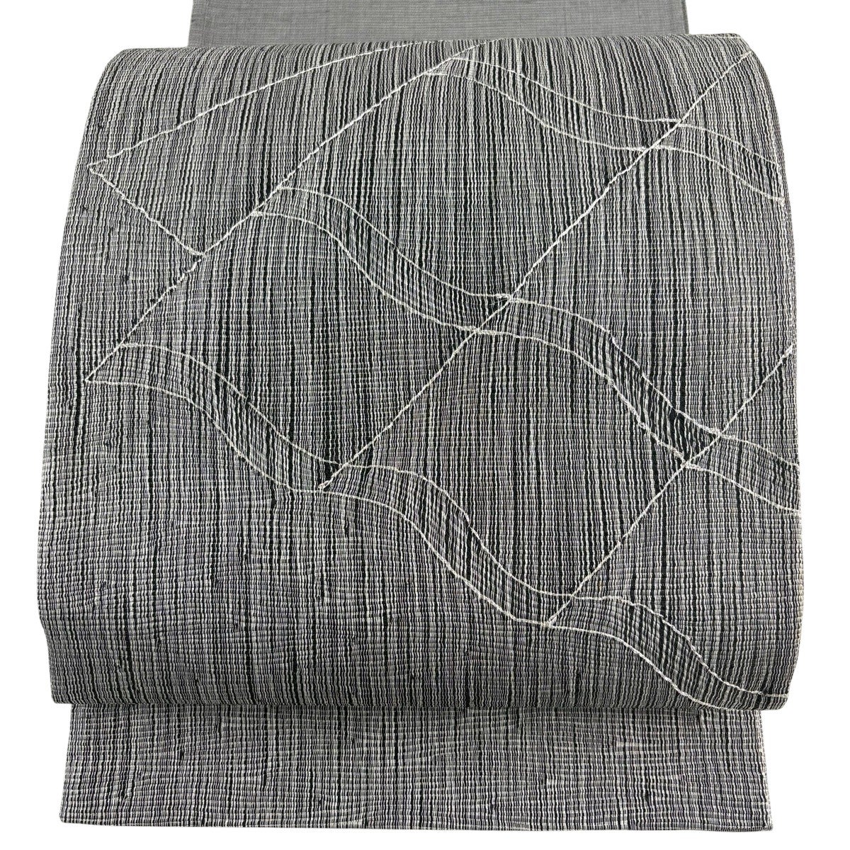 【美品】 袋帯 秀品 夏帯 絽 幾何学模様 銀糸 墨色 お太鼓柄 正絹