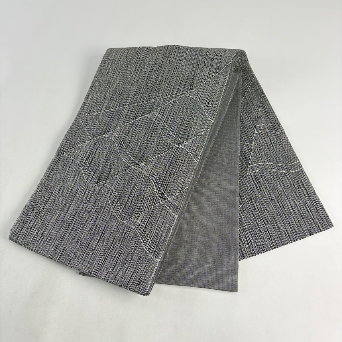 名古屋帯 秀品 夏帯 絽 八寸名古屋帯 松葉仕立て 幾何学 刺繍 灰色 正絹