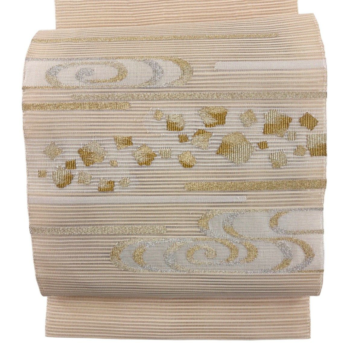 袋帯 秀品 夏帯 絽 幾何学模様 金銀糸 ベージュ お太鼓柄 正絹