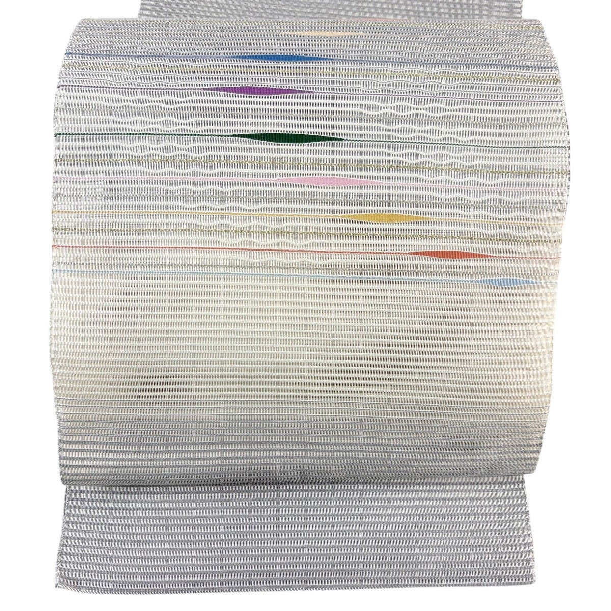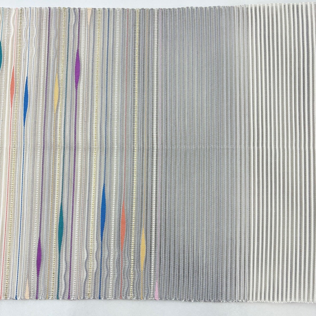 【美品】 名古屋帯 秀品 夏帯 絽 八寸名古屋帯 縞 よろけ縞 金銀糸 灰色 正絹