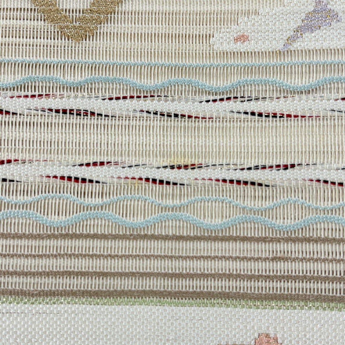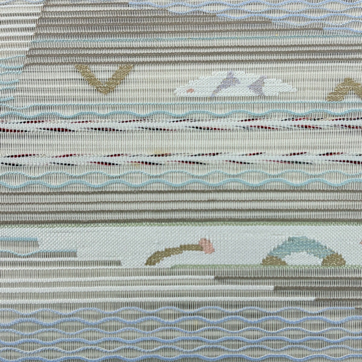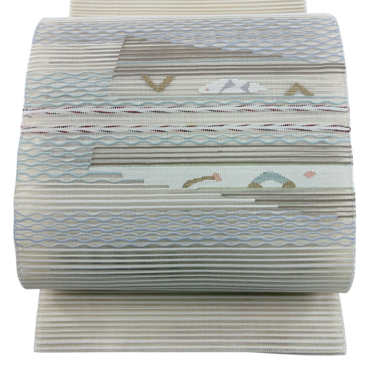袋帯 秀品 夏帯 絽 やまと 幾何学模様 金銀糸 クリーム お太鼓柄 正絹