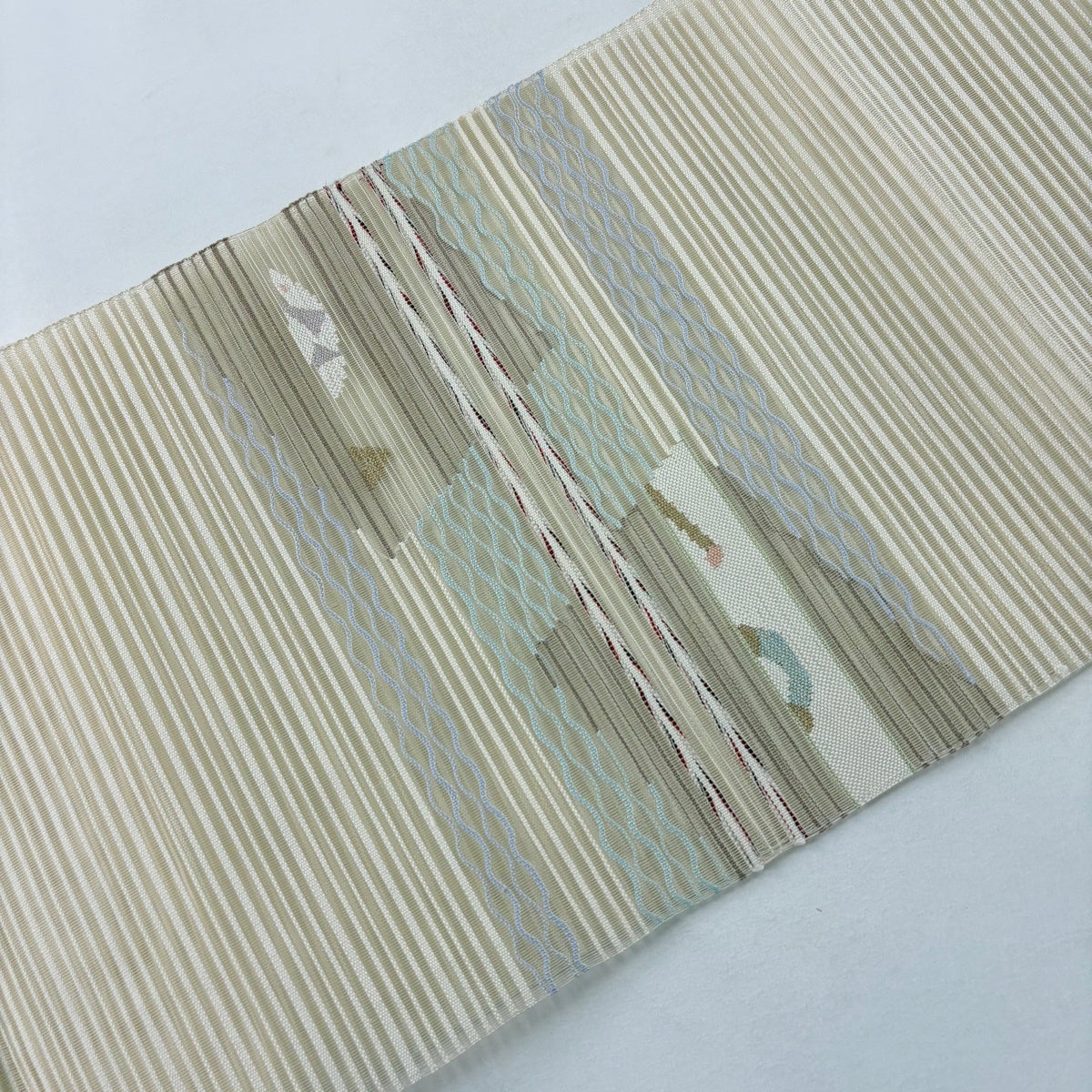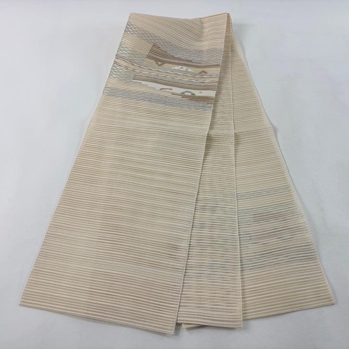 【美品】 袋帯 秀品 夏帯 絽 幾何学 金銀糸 ベージュ お太鼓柄 正絹