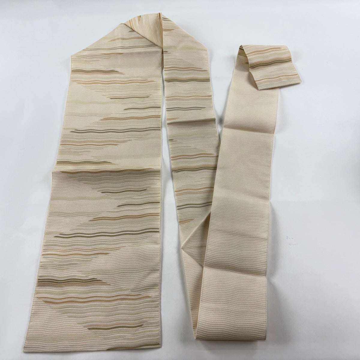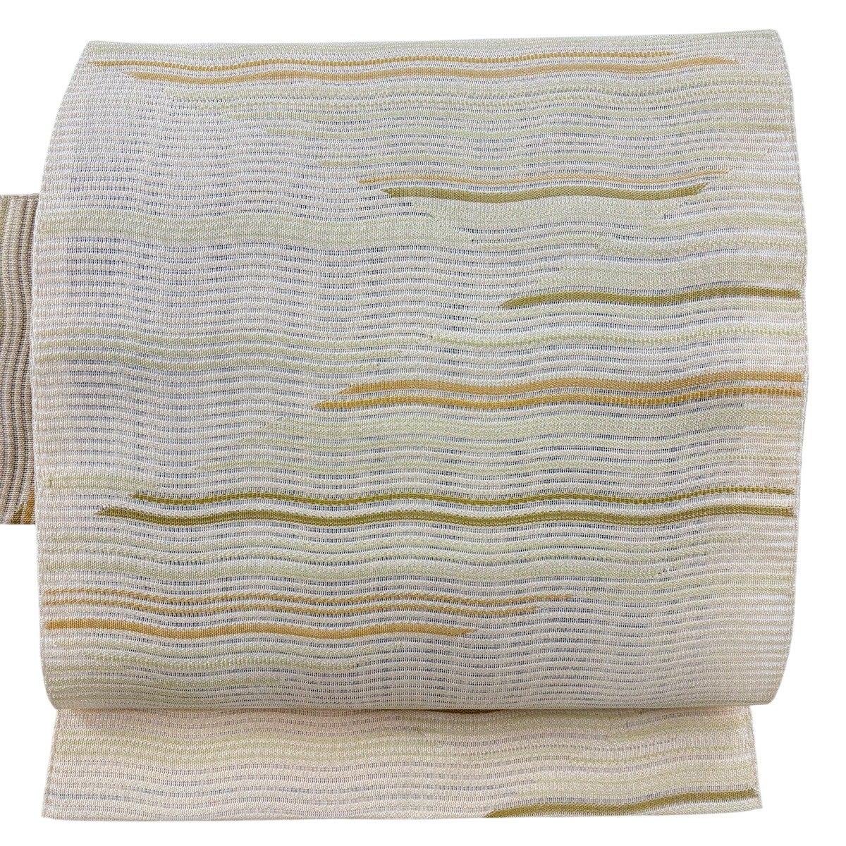 【美品】 名古屋帯 秀品 夏帯 絽 波 幾何学模様 金銀糸 ベージュ 正絹