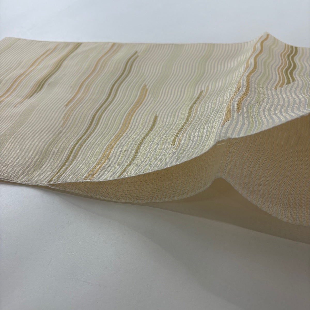 名古屋帯 秀品 夏帯 絽 八寸名古屋帯 よろけ縞 幾何学模様 金銀糸 クリーム 正絹