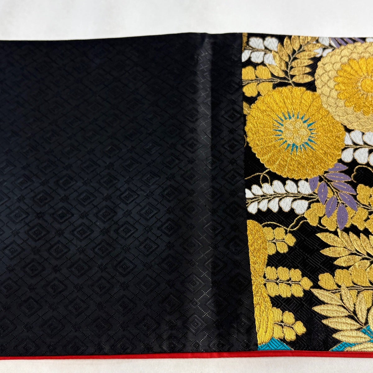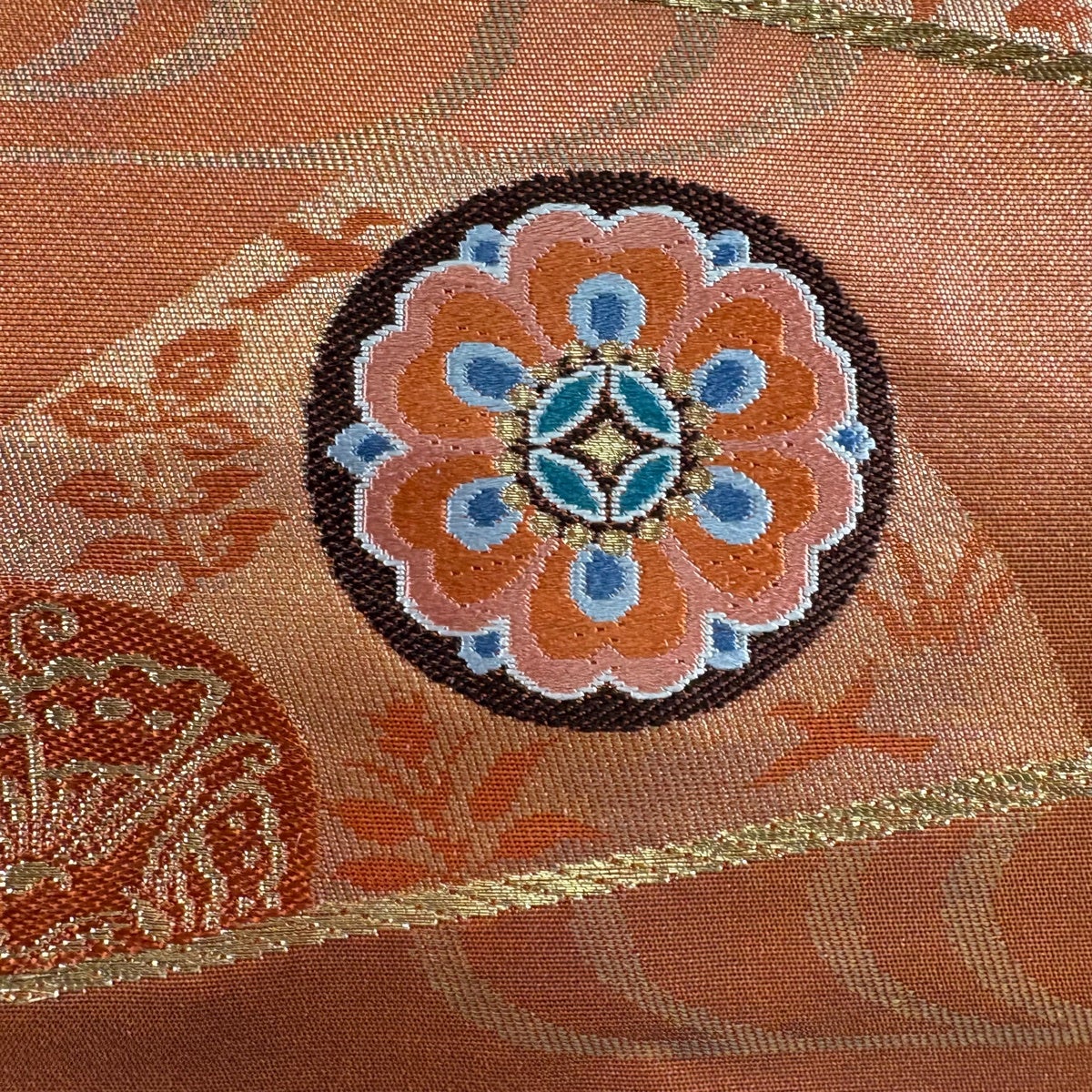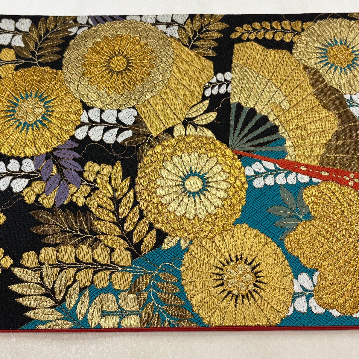 袋帯 秀品 関西仕立て 扇 菊 金糸 唐織 金色 六通 正絹